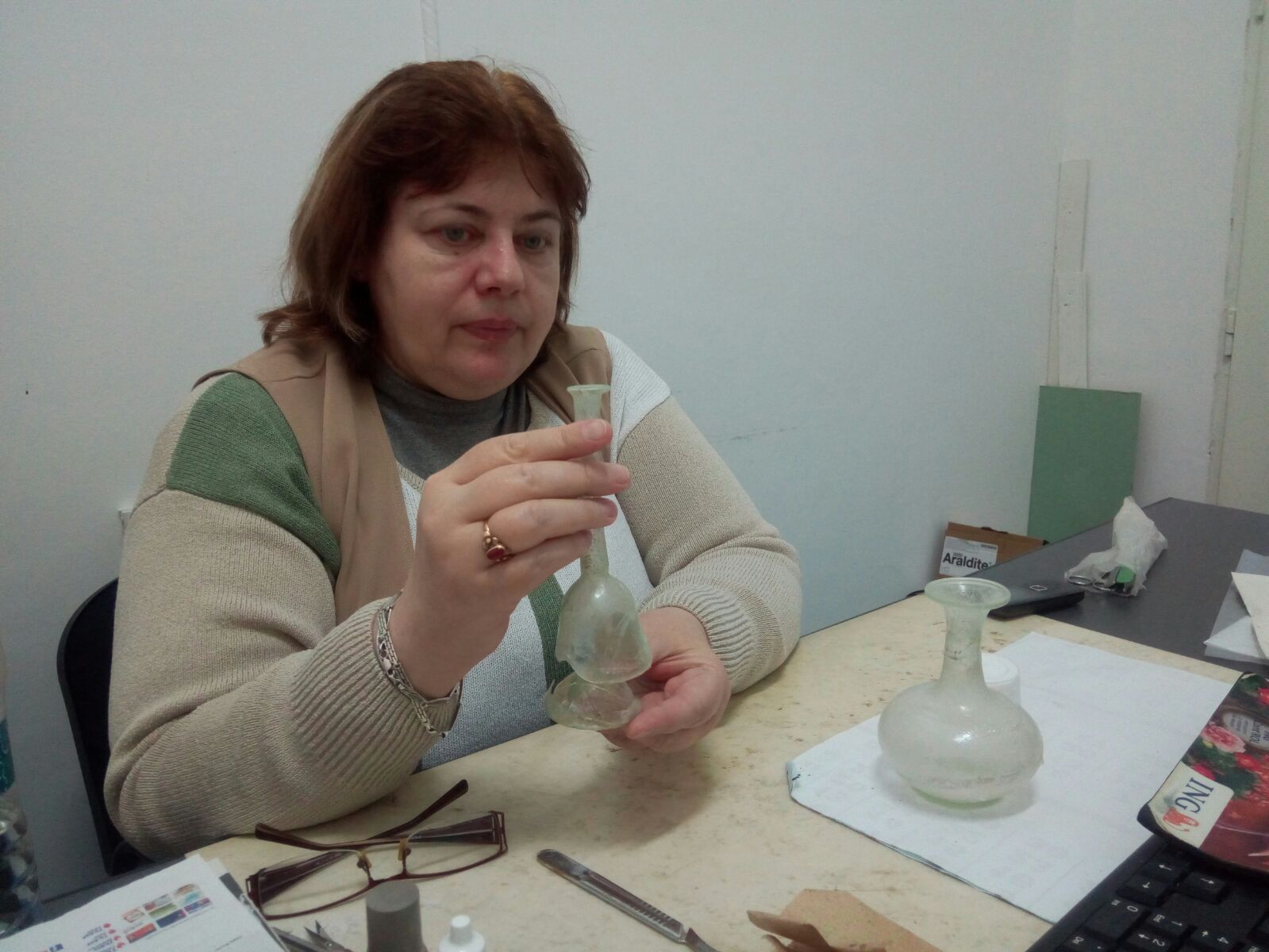 Pe Mădălina Lemnaru, restauratorul de sticlă și ceramică de la Muzeul de Istorie Națională și Arheologie din Constanța am cunoscut-o în timp ce fixa cu rășină epoxidică feliile tăioase ale unui piese antice. Un vas din sticlă în care au fost ținute în urmă cu 2000 de ani uleiuri pentru îmbălsămare începe să prindă contur în zeci de ore de muncă.