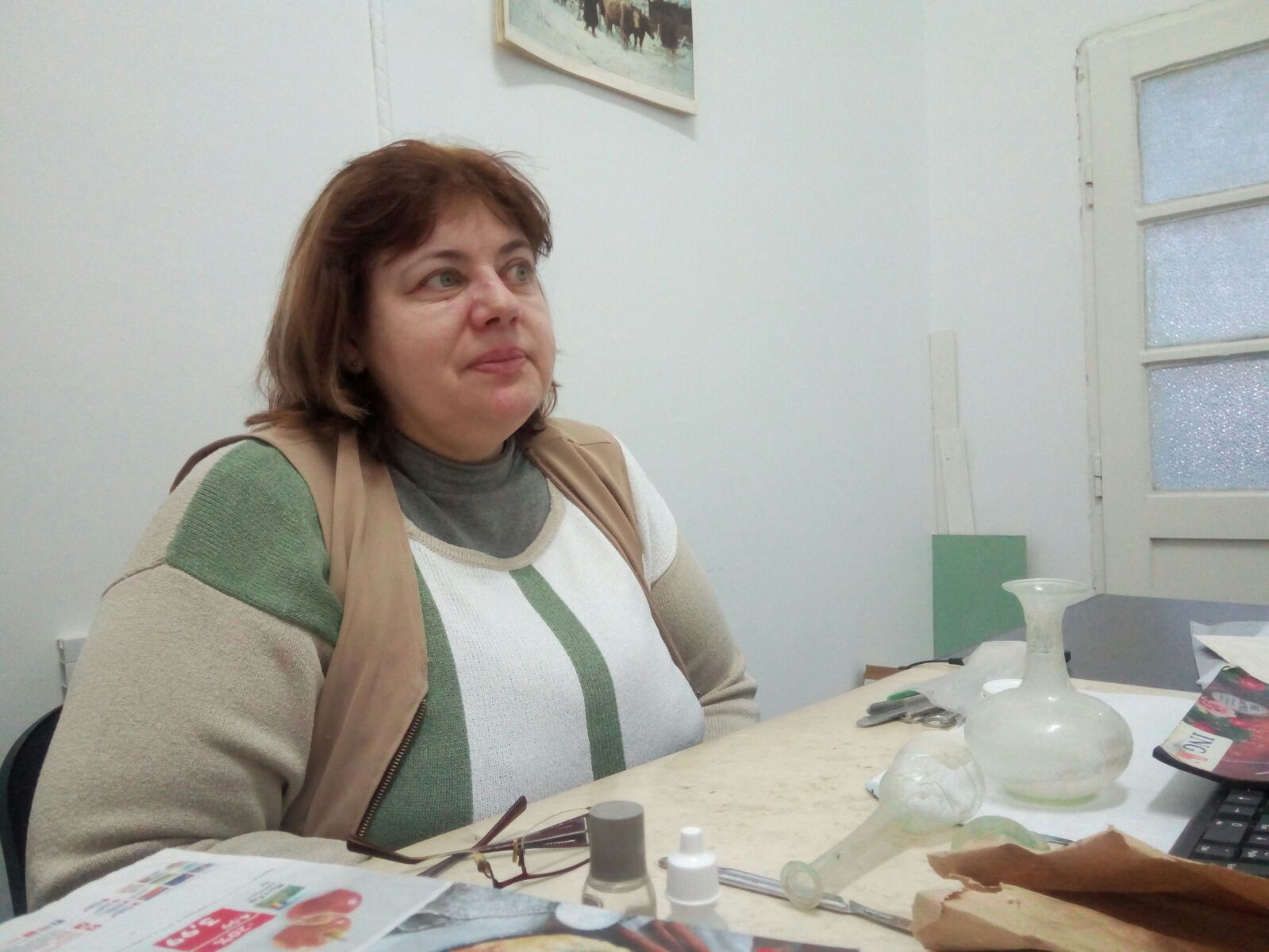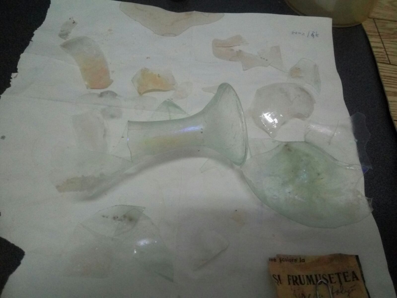 Mădălina Lemnaru- restauratorul de sticlă și ceramică: „Atunci când ni se aduc – și sunt unele foarte subțiri, mai subțiri decât coaja de ou – atunci avem mare grijă. Spălăm cioburile respective, le facem tratament chimic, apoi neutralizăm acele cioburi, le uscăm, le întindem pe o hârtie și începem să ne jucăm exact ca și cu un puzzle. Când asamblezi și ai o mică deviație, la final vezi că vasul nu ți se întregește bine din cauza acelei erori“