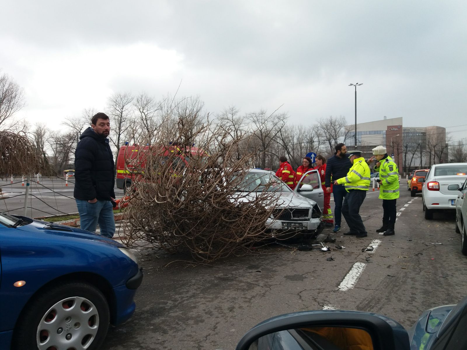Potrivit primelor informații oferite de participanții la trafic, un șofer a intrat cu mașina într-un copac, starea bărbatului fiind stabilă. Impactul a fost atât e violent încât pomul a fost smuls din rădăcini.