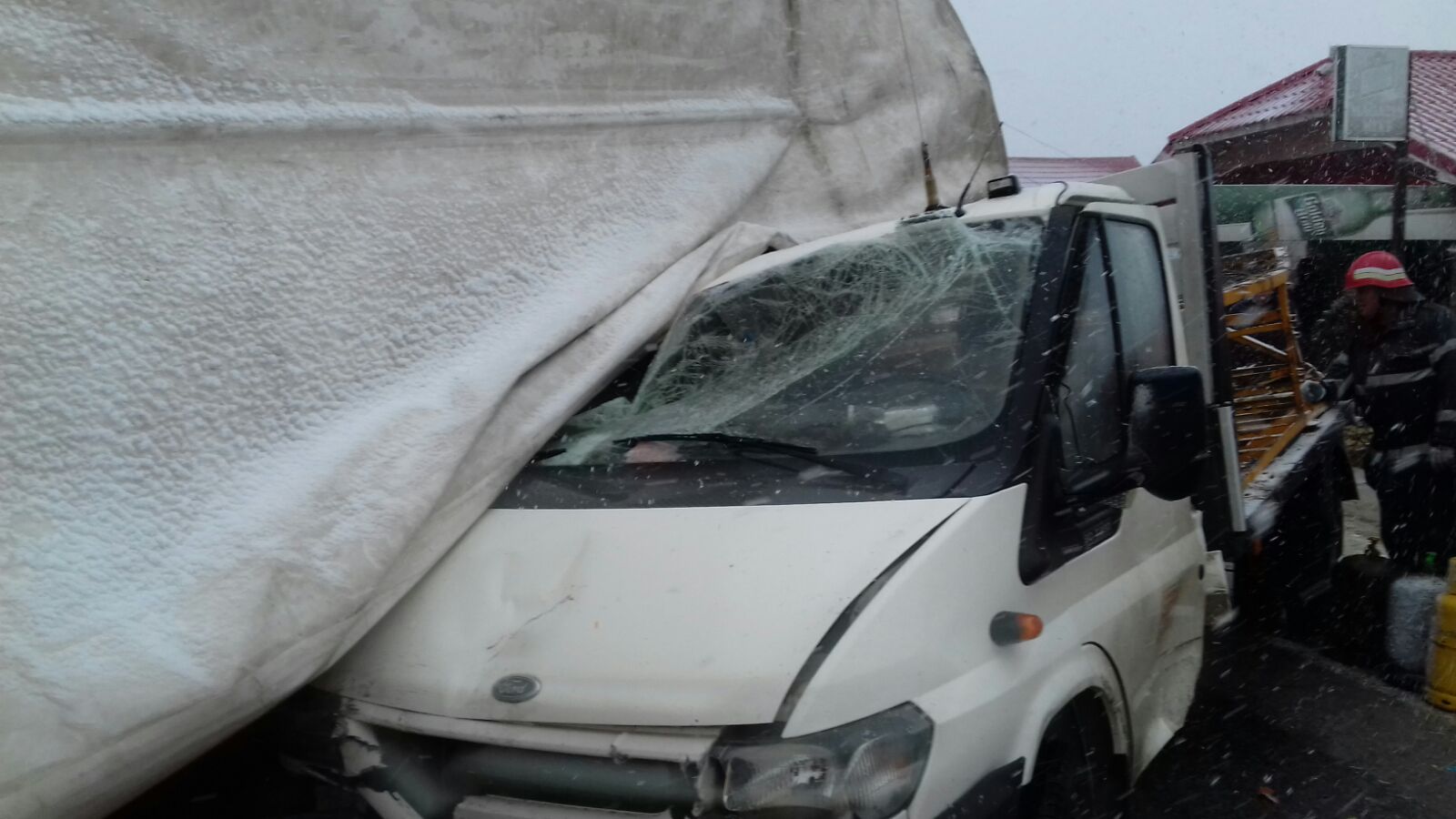 În urma impactului șoferul autoutilitarei prezintă hipertensiune și a făcut un atac de panică.