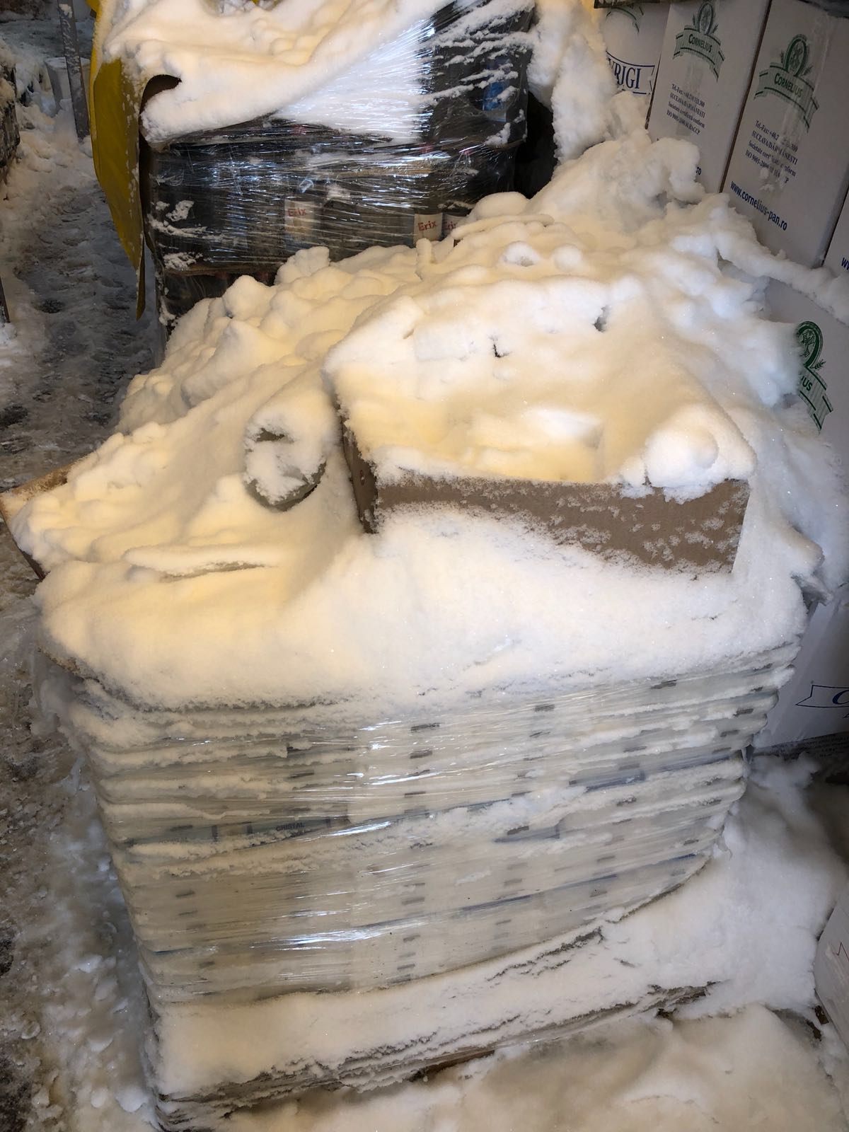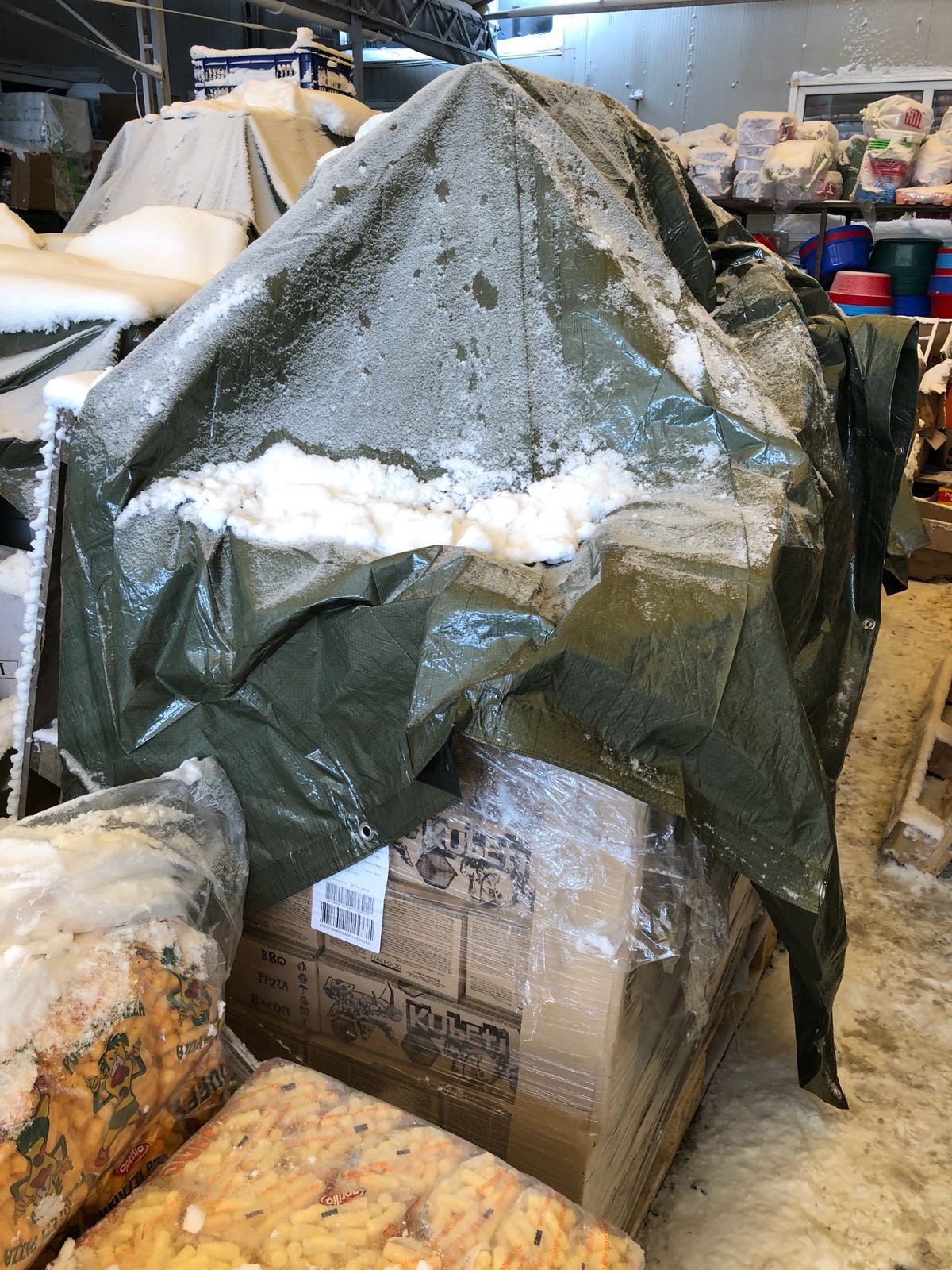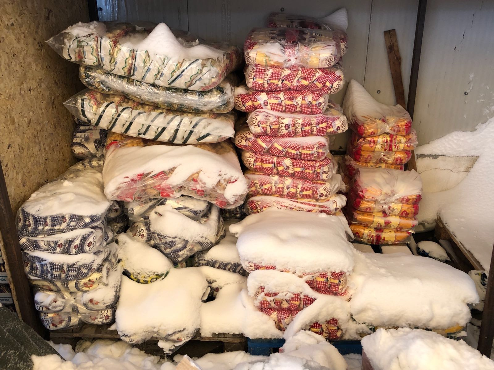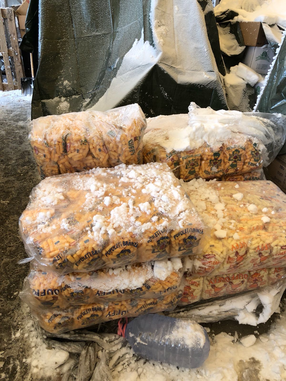 FOTO – OPC CONSTANȚA: Produse alimentare acoperite de zăpadă într-un depozit