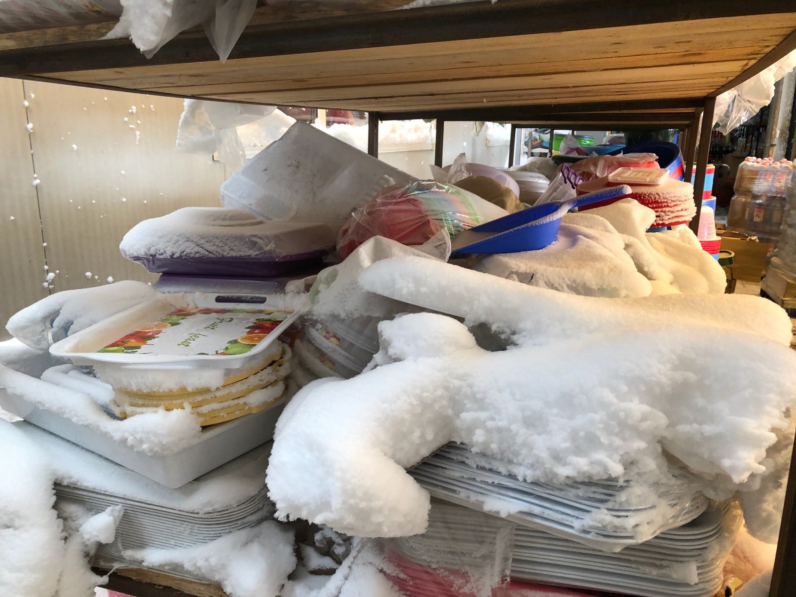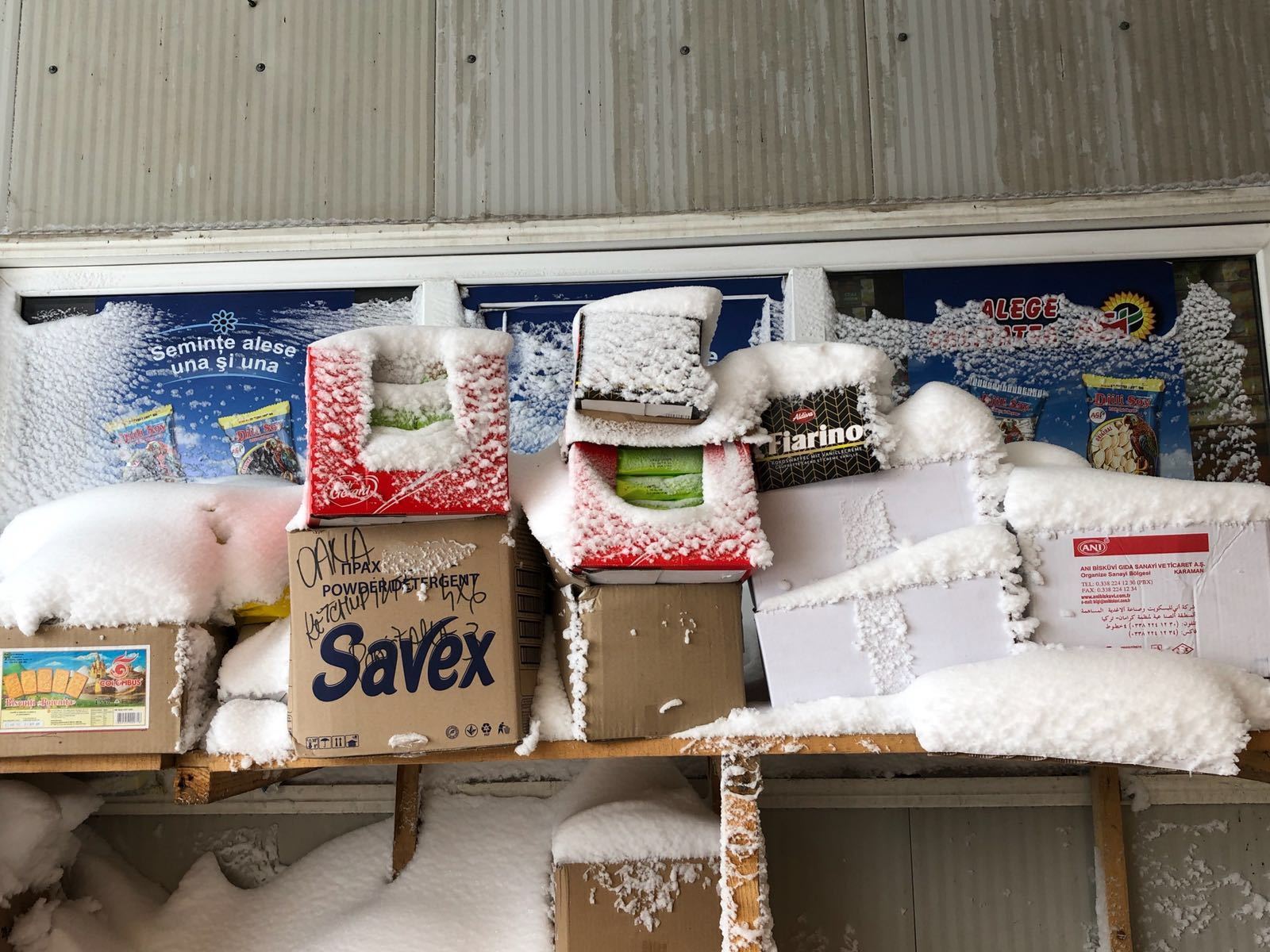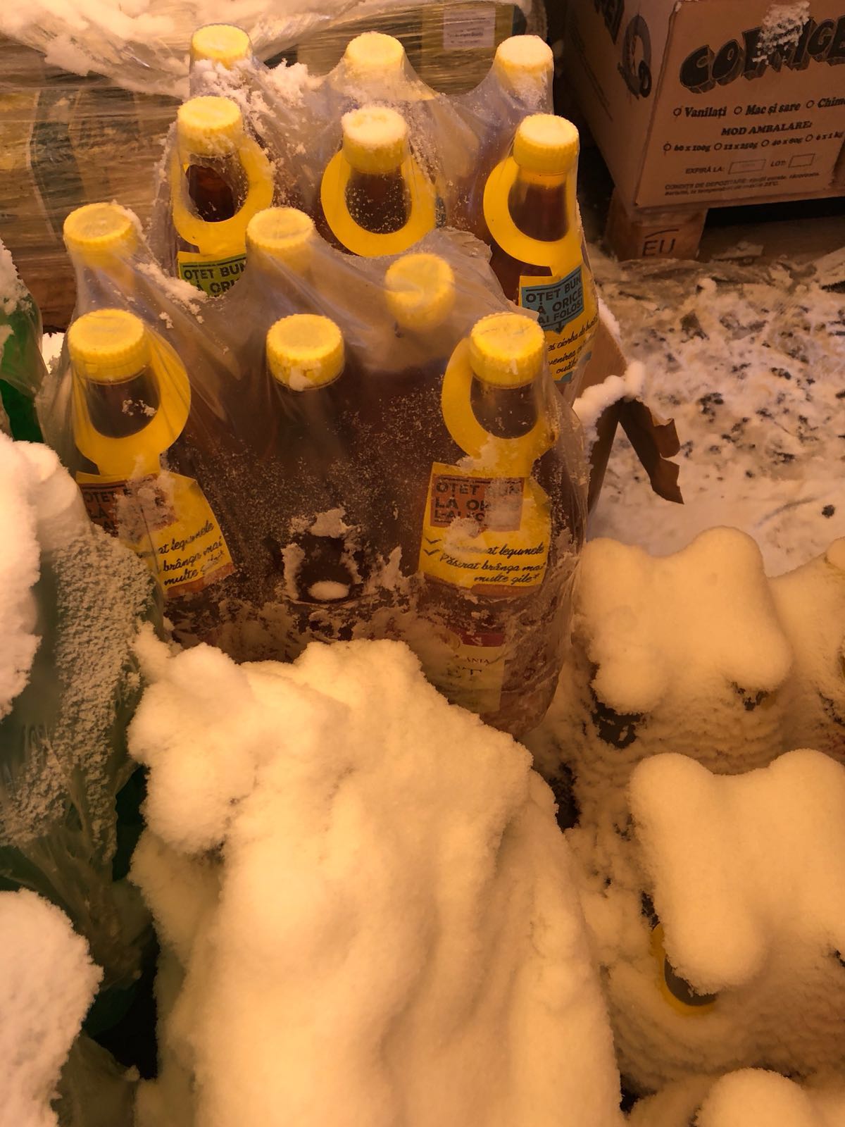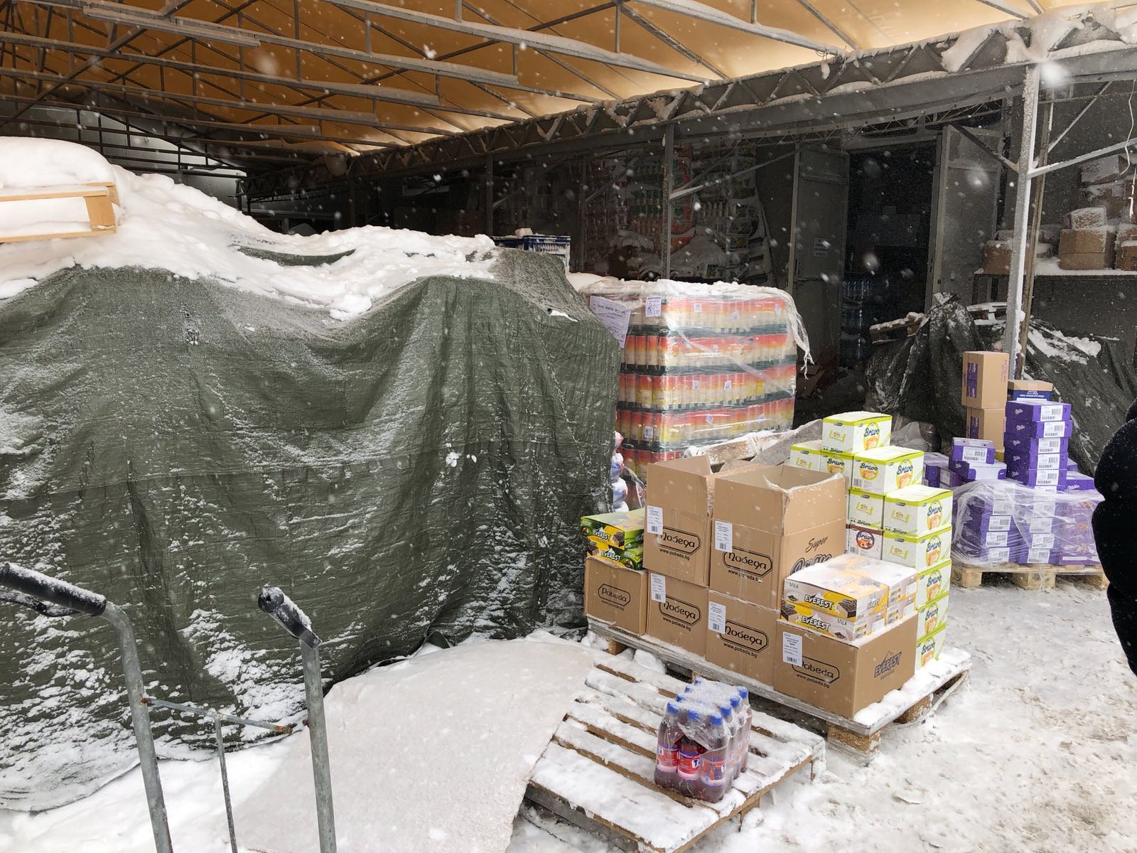 FOTO – OPC CONSTANȚA: Produse alimentare acoperite de zăpadă într-un depozit