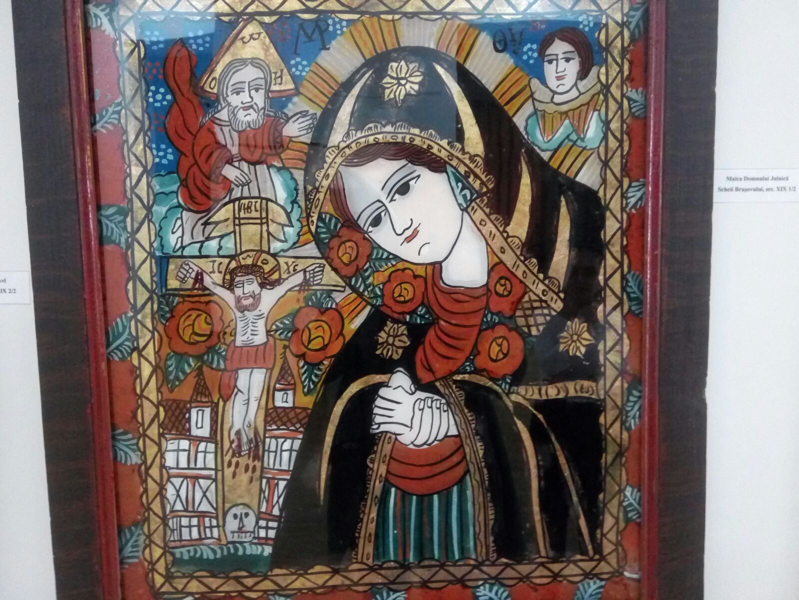 Maica Domnului îndurerată, îmbrăcată în haine cernite, cu mâinile împreunate și cu ochii înlăcrimați, dar și Isus Hristos răstignit pe cruce, pe Golgota Durerii, sunt chipurile care apar cel mai adesea în icoanele pictate pe sticlă de la Muzeul de Artă Populară din Constanța. Icoanele vechi provin din centre cu tradiție precum cele de la Nicula, Gherla, Scheii Brașovului sau Mărginimea Sibiului. Muzeografii spun că sunt icoane pictate în secolele XVIII și XIX.