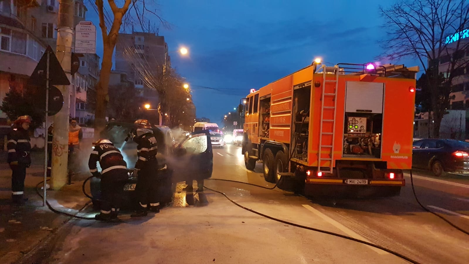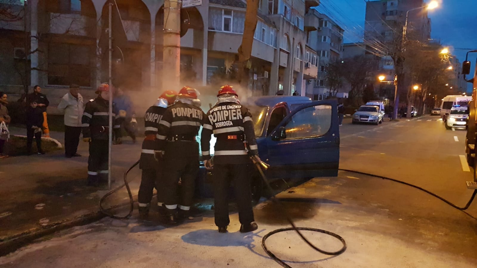Pompierii din cadrul Ispectoratului pentru Situații de Urgență „Dobrogea” Constanța au fost solicitați, joi seara, să intervină în cazul unui incendiu izbucnit la o mașină pe bulevardul Alexandru Lăpușneanu din Constanța, mai exact vis-à-vis de Universitatea Andrei Șaguna.