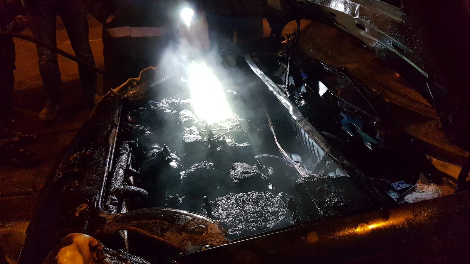 Se pare că mașina era în mers când șoferul a văzut că de sub capotă iese fum și a staționat de urgență pe partea dreaptă a carosabilului.