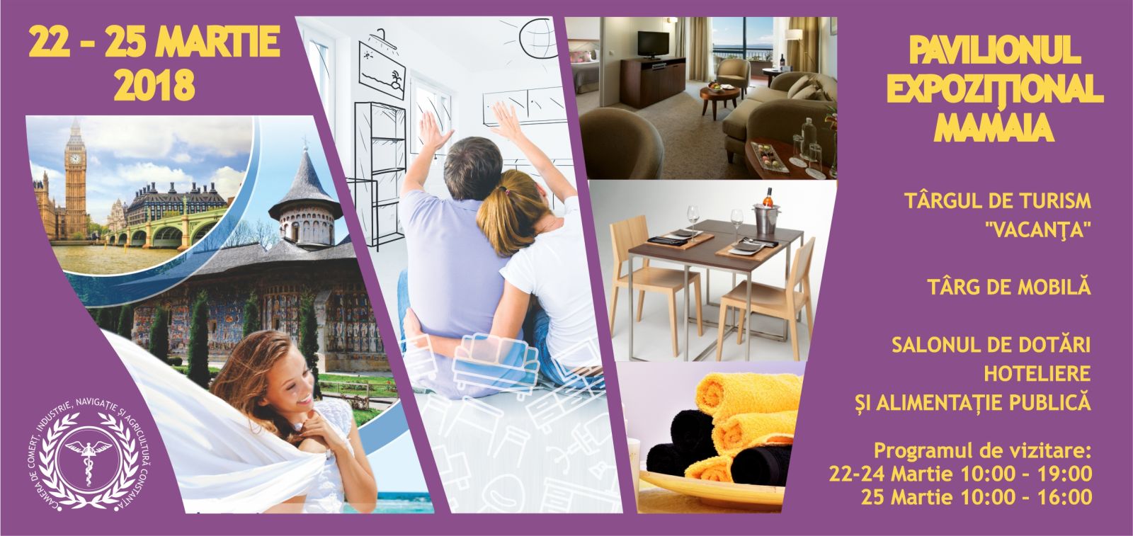 Camera de Comerț, Industrie, Navigație și Agricultură Constanța (CCINA) şi Asociaţia Naţională a Agenţiilor de Turism (ANAT), organizează, în perioada 22 – 25 martie 2018, ediția a XI-a a Târgului de Turism „VACANȚA” Constanța, cel mai mare eveniment de profil din zonă în domeniul promovării turismului.