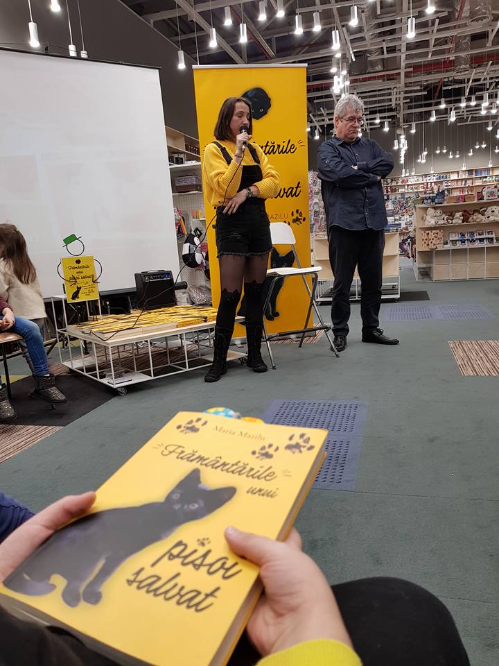Cartea „Frământările unui  pisoi salvat”  este în cea mai mare parte ficțiune, dar conține și  întâmplări adevărate petrecute la poalele Vârfului Caraiman.  Gazdele evenimentului de seara trecută au fost colegii noștri Daniel Sârbu, Adelina Tocitu, și psihoterapeutul Elena Harbur.
