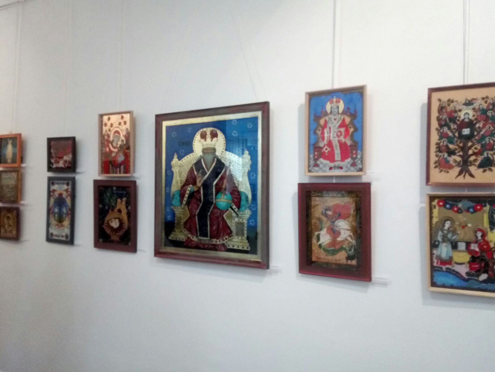 Sala de expoziție de la etajul trei a Muzeului de Artă din Constanța s-a transformat într-un spațiu sacru, un spațiu al icoanelor pe sticlă lucrate de profesorii, studenții și masteranzii Facultății de Arte ai Universității Ovidius. Totul a început cu un atelier de pictură a icoanelor, apoi lucrările au început să vină din toate părțile și așa s-a născut această expoziție ne spune lectorul universitar doctor – artista – Lelia Rus Pîrvan.