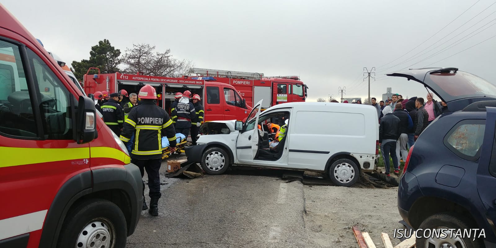 Trei persoane au fost grav rănite, miercuri după-amiază, în urma impactului violent dintre trei autoturisme, pe DN 3 între Constanța și Valu lui Traian.