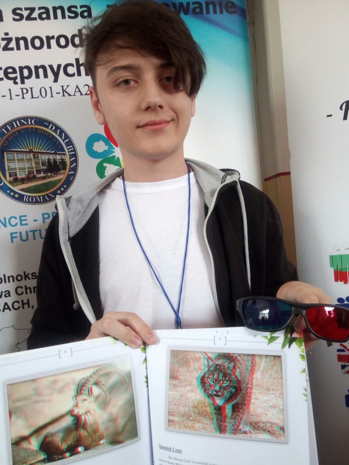 „Mă numesc Cristea Alexandru și astăzi am venit cu un proiect dedicat protecției mediului, mai exact un proiect interactiv pentru elevii de orice vârstă, o carte 3 D cu ochelari 3 D în care putem vedea animale pe cale de dispariție”, a declarat Alexandru din Piatra Neamț.