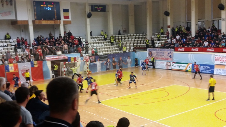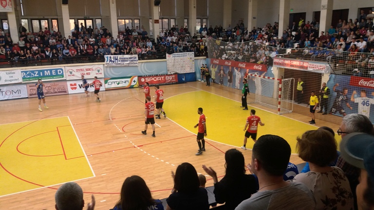 Gazdele au fost conduse cu 7-6 în prima repriză și au egalat, apoi au preluat conducerea cu 8-7 în minutul 21 de joc.Încurajați de o galerie frenetică și de un public numeros, jucătorii formației constănțene au încheiat prima repriză cu u n avantaj de trei goluri, scor 12-9.