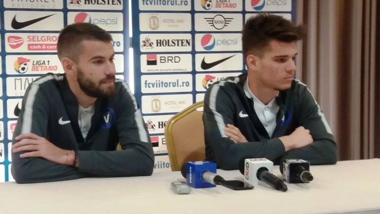 Doi dintre jucătorii formației constănțene, mijlocașul Ianis Hagi și fundașul central Bogdan Țîru au fost prezenți astăzi la conferința de presă.