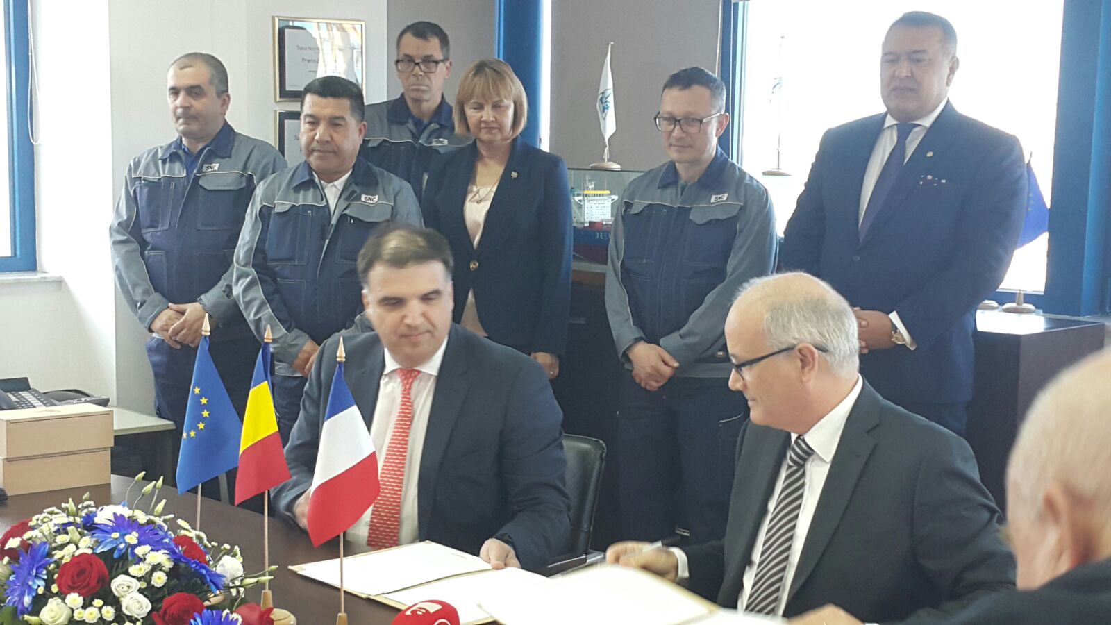 Proiectul semnat vineri între cele două societăţi va permite ca Şantierul Naval de la Constanţa să se înscrie la licitaţia pentru corvetele multifuncţionale, împreună cu partenerul francez.