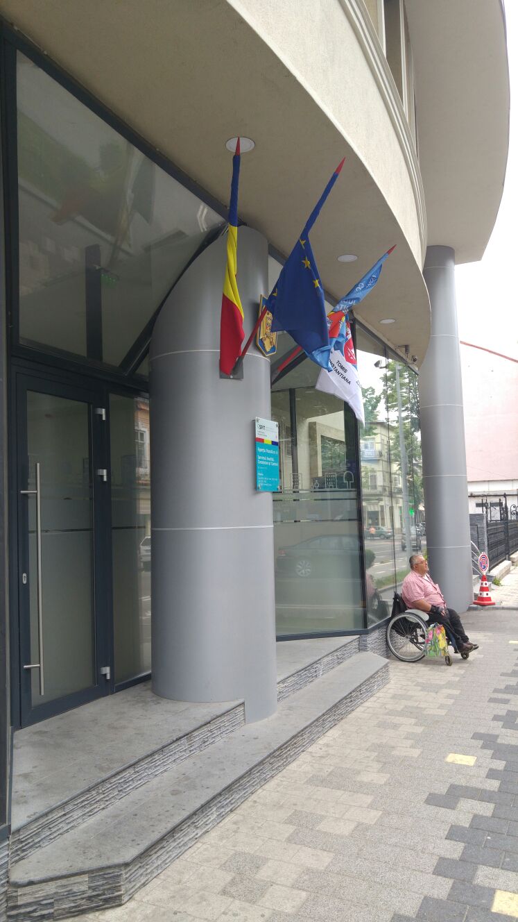 În privința rampei de acces din interiorul agenției fiscale, ni s-a spus că aceasta este înlocuită de un cărucior special adaptat pentru urcarea scărilor.