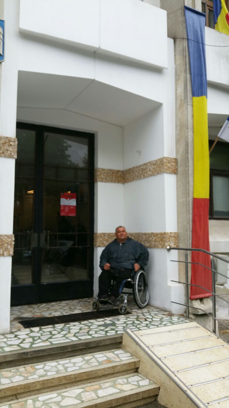 Reprezentanți agenției fiscale de pe bulevardul Tomis au acceptat să discute cu protestatarul. De menționat ar fi că imobilul în care funcționează instituția publică dispune de o rampă de acces din exterior, însă în incinta clădirii nu există facilități pentru persoanele cu dizabilități, astfel că a fost nevoie ca Ion Gembășanu să fie cărat aproape pe brațe înăuntru cu tot cu scaunul cu rotile.