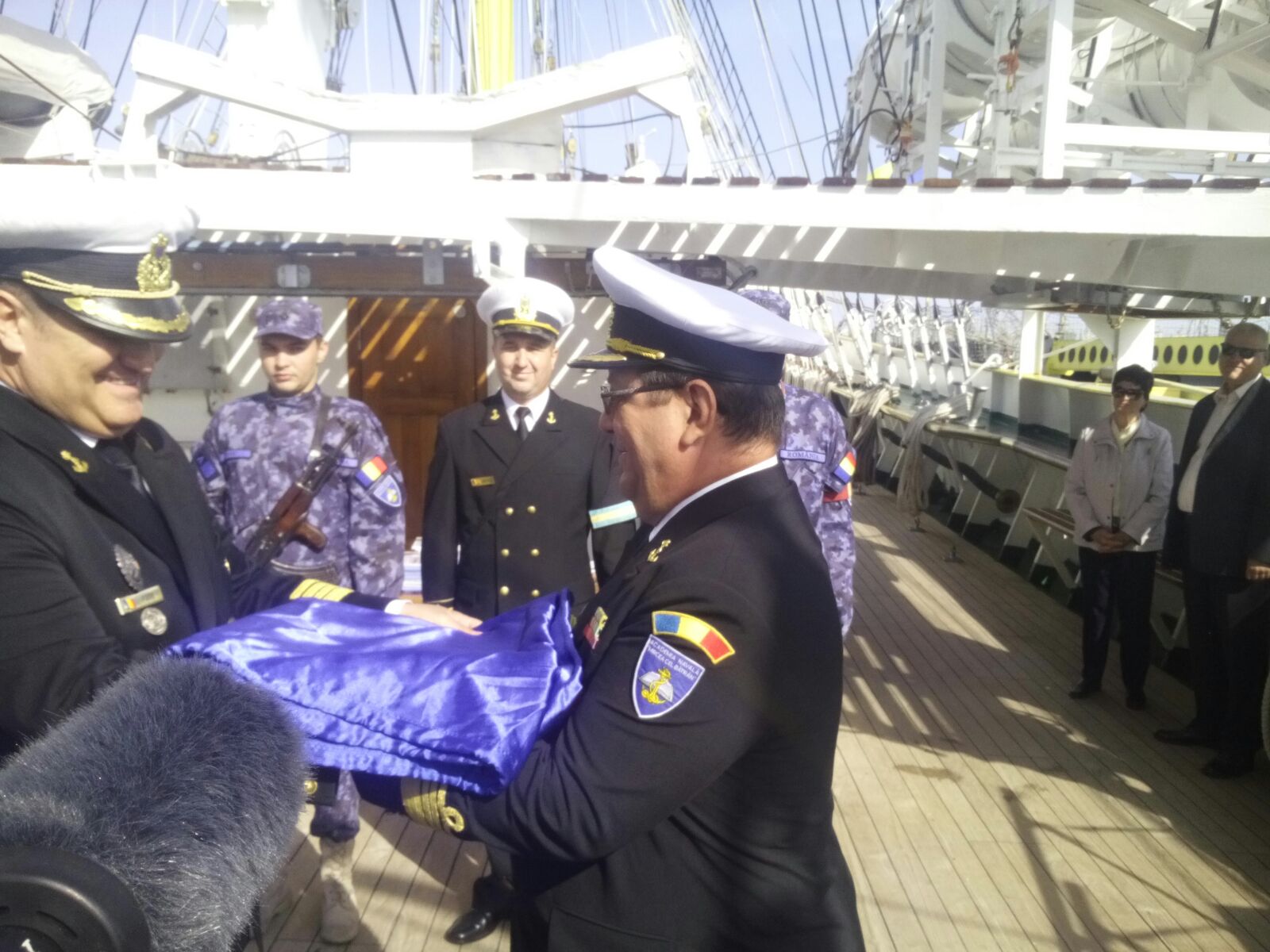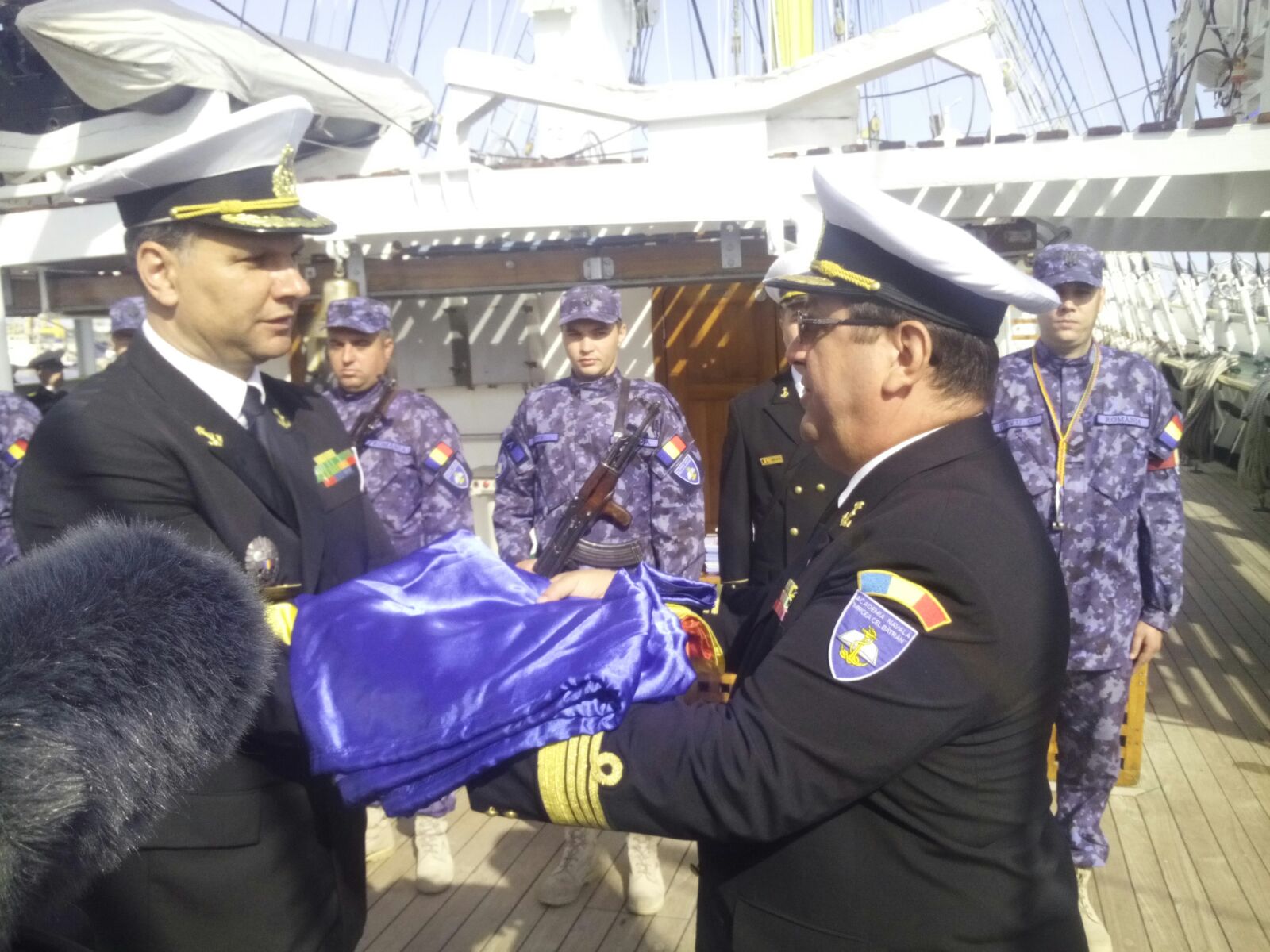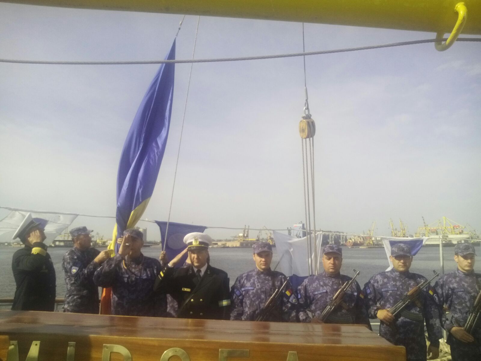 Cu acest prilej, la această oră, are loc o ceremonie în cadrul căreia comandorul Ioan-Gabriel Moise va preda pavilionul navei noului comandant al Navei-Școală „Mircea”, comandorul Mircea Târhoacă.