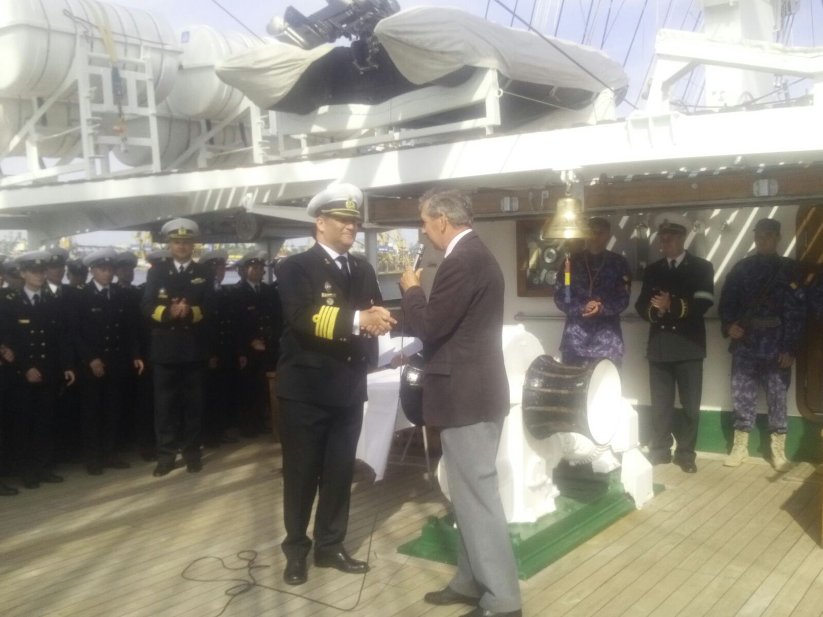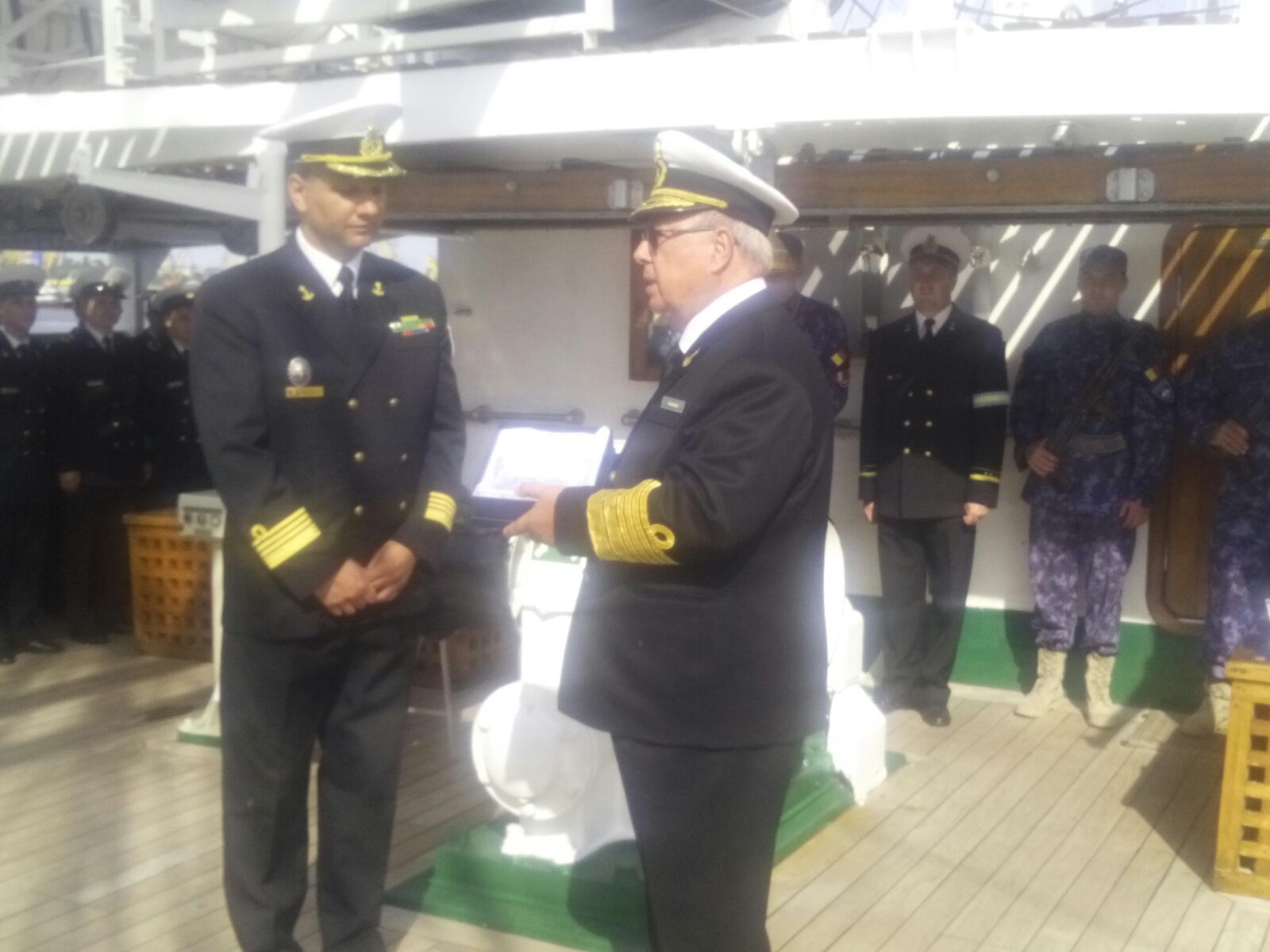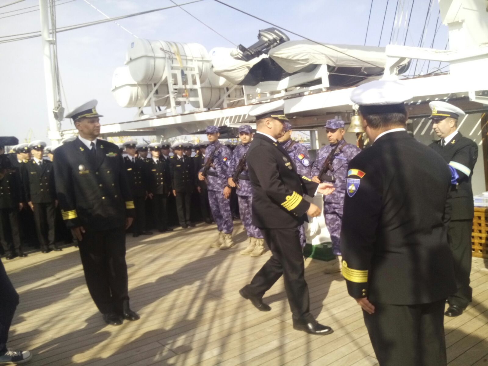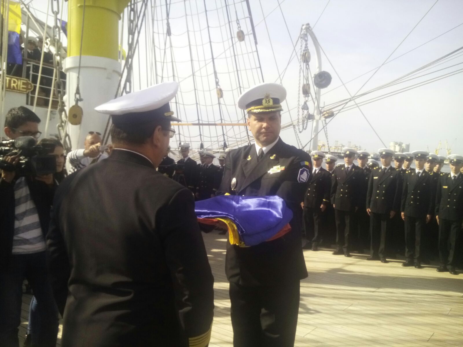 Cu acest prilej, la această oră, are loc o ceremonie în cadrul căreia comandorul Ioan-Gabriel Moise va preda pavilionul navei noului comandant al Navei-Școală „Mircea”, comandorul Mircea Târhoacă.