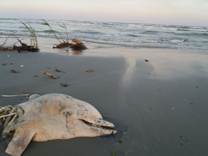 VIDEO/FOTO: Furtuna a adus pe plaja din Sulina mai mulți delfini morţi