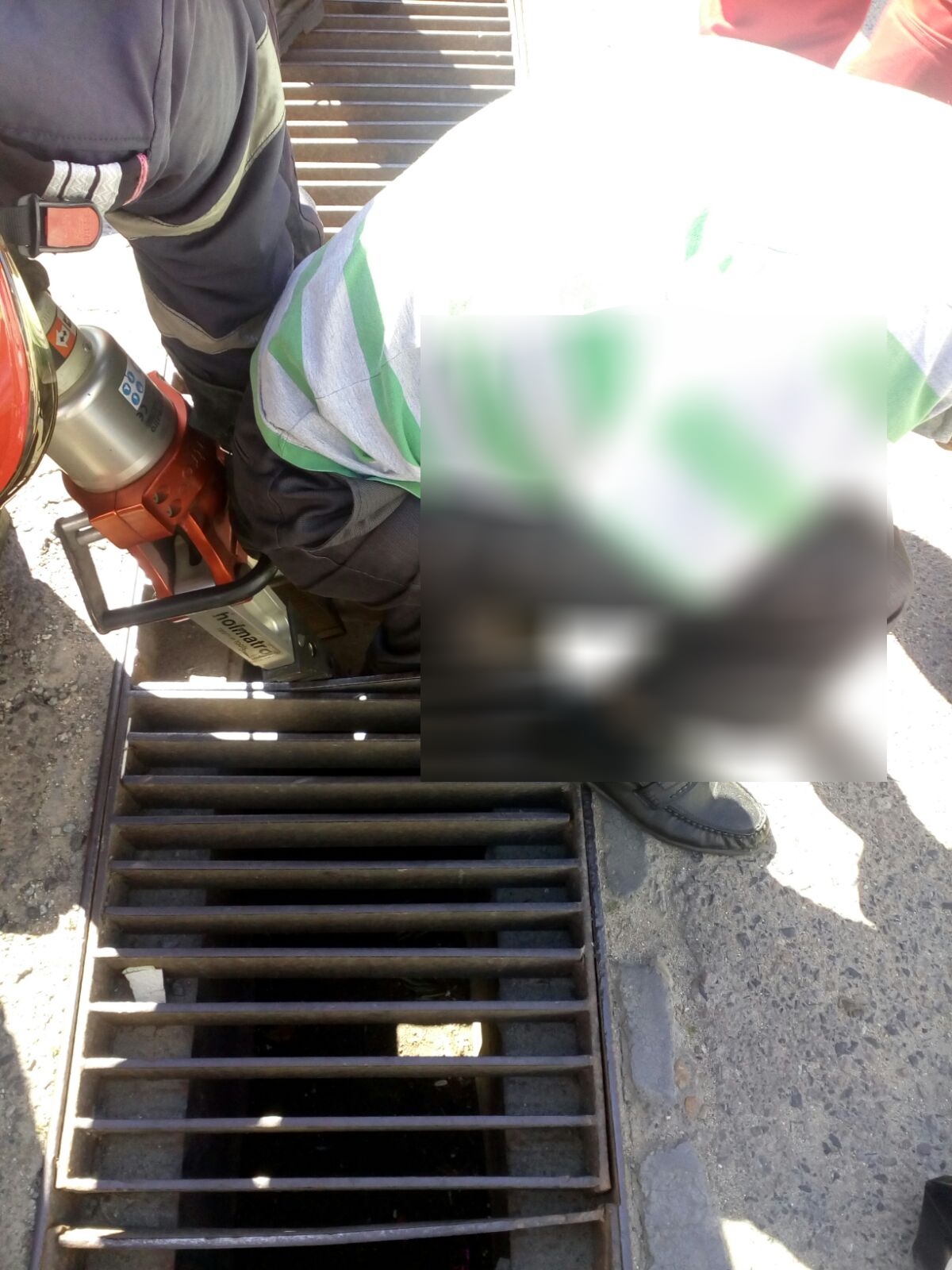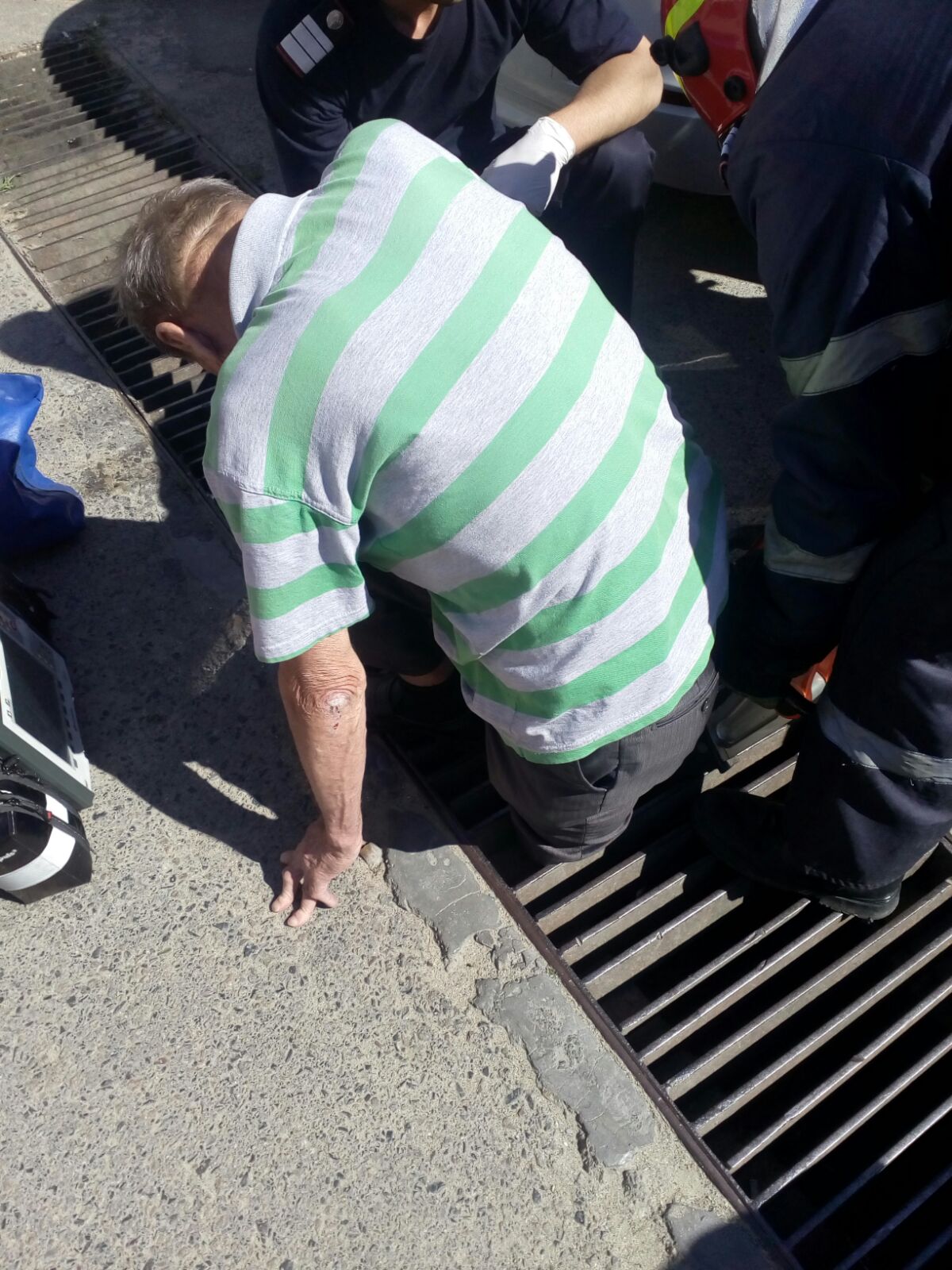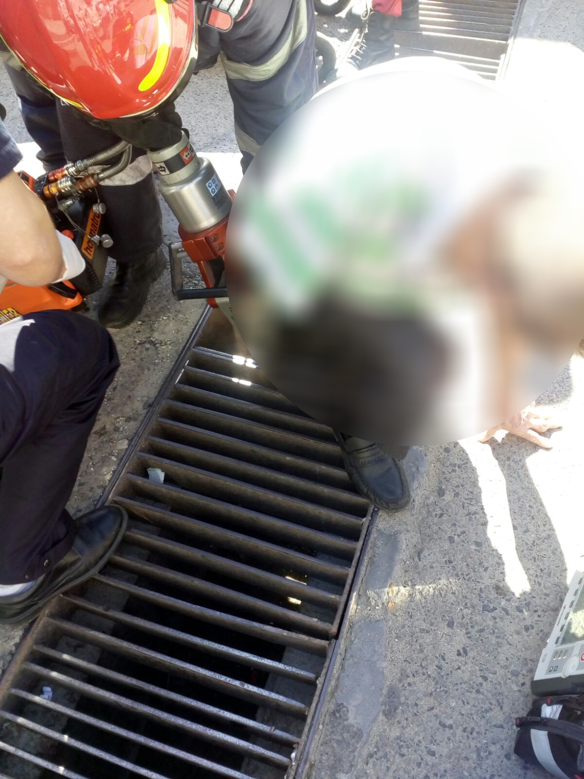 Modul în care bărbatul a alunecat și și-a prins piciorul în grilajul metalic nu este deocamdată clar.