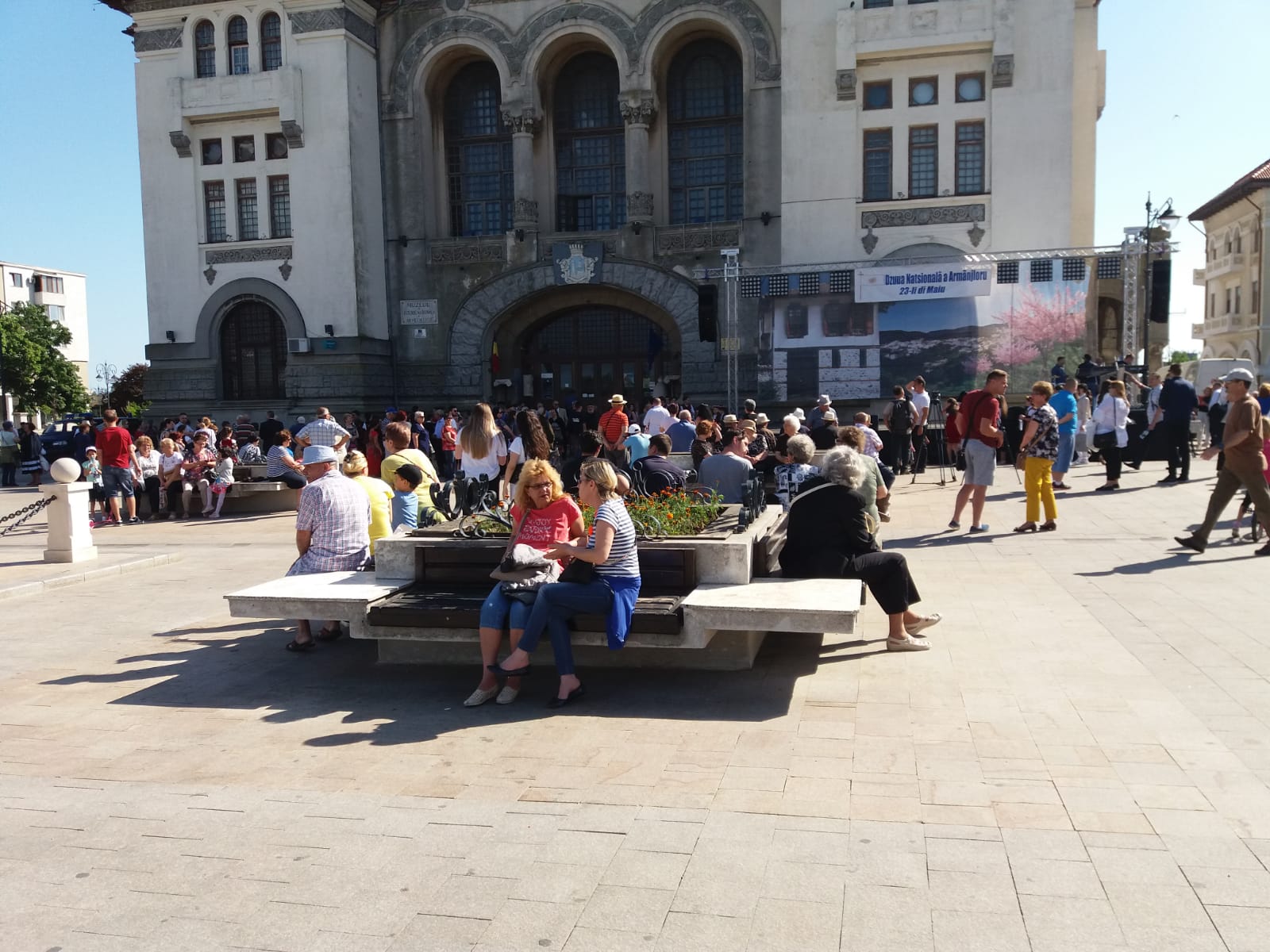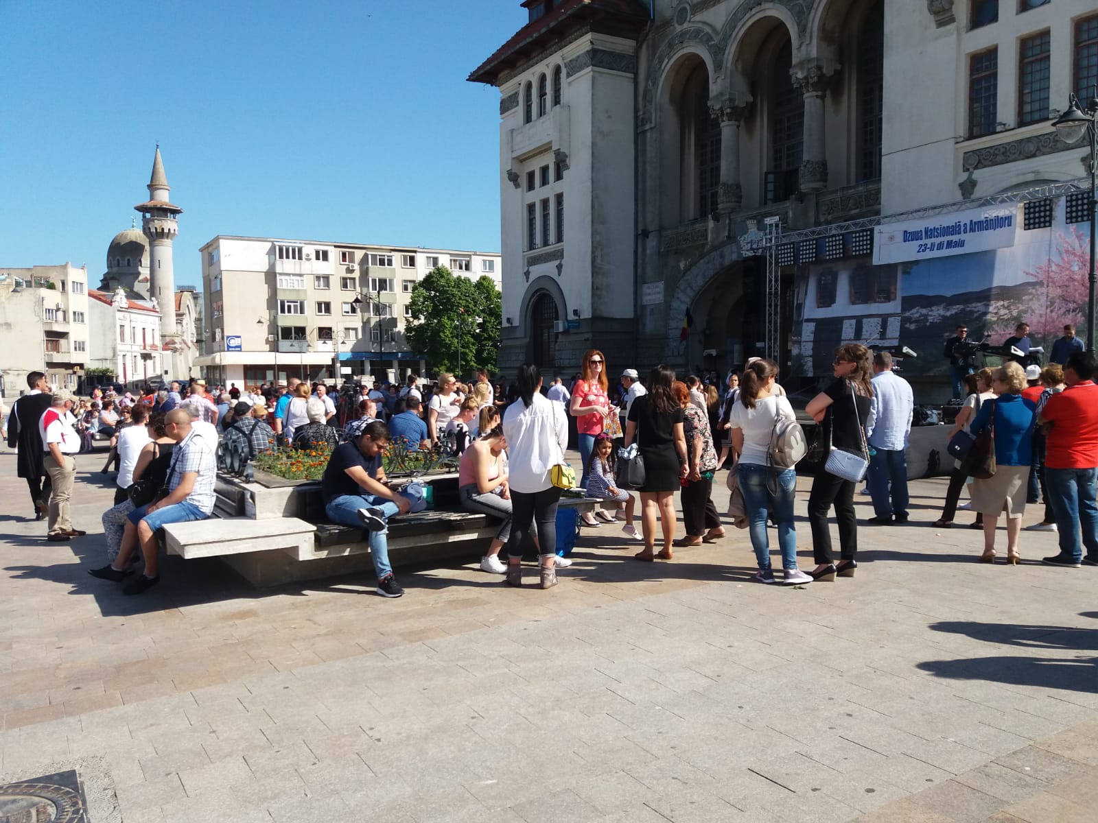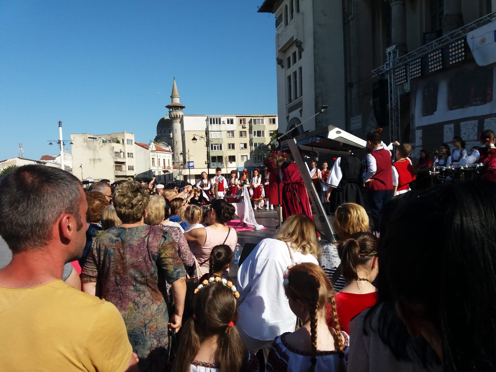 O atmosferă de sărbătoare, cu dans şi cântec, în Piaţa Ovidiu din Constanţa. Sute de oameni s-au strâns în Piață, unde atmosfera este întreținută de artiști aromâni din comunitate.