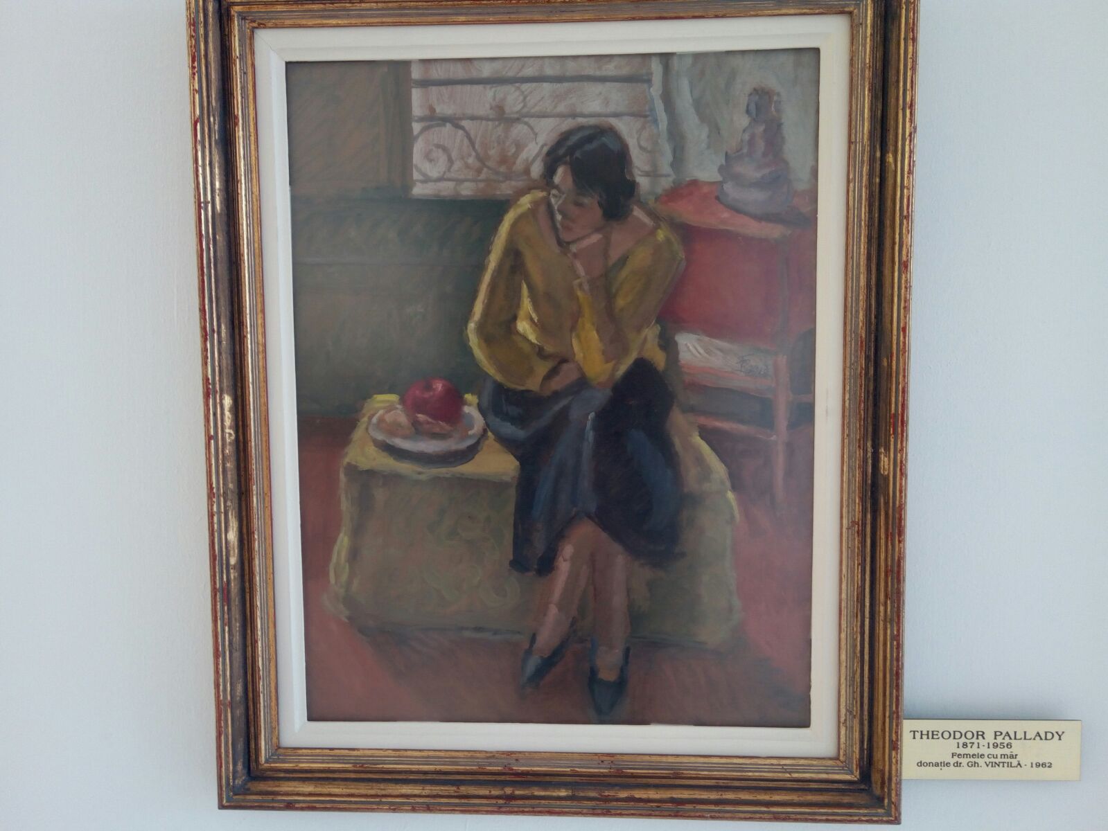 Reporter: Aici avem o lucrare semnată de Magdalena Rădulescu 1902- 1983, Portret – donație Cella Serghi 1984. Cum ați intervenit pentru conservarea acestei lucrări?