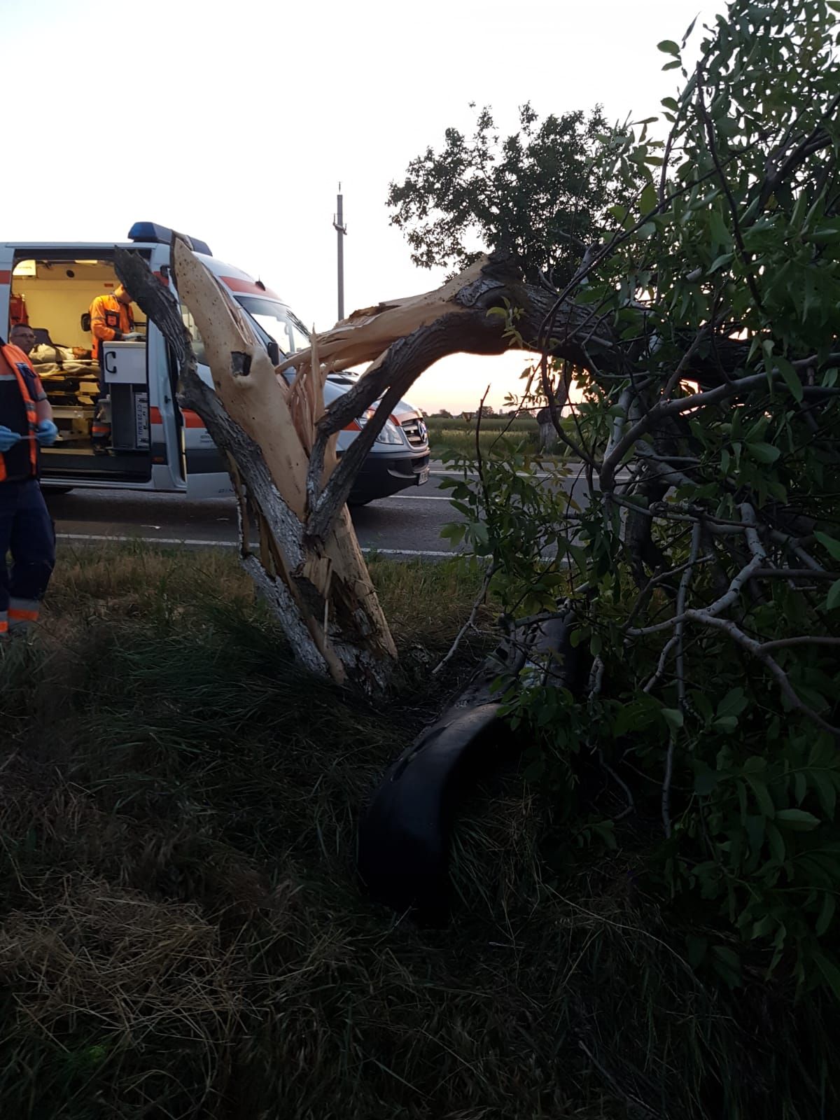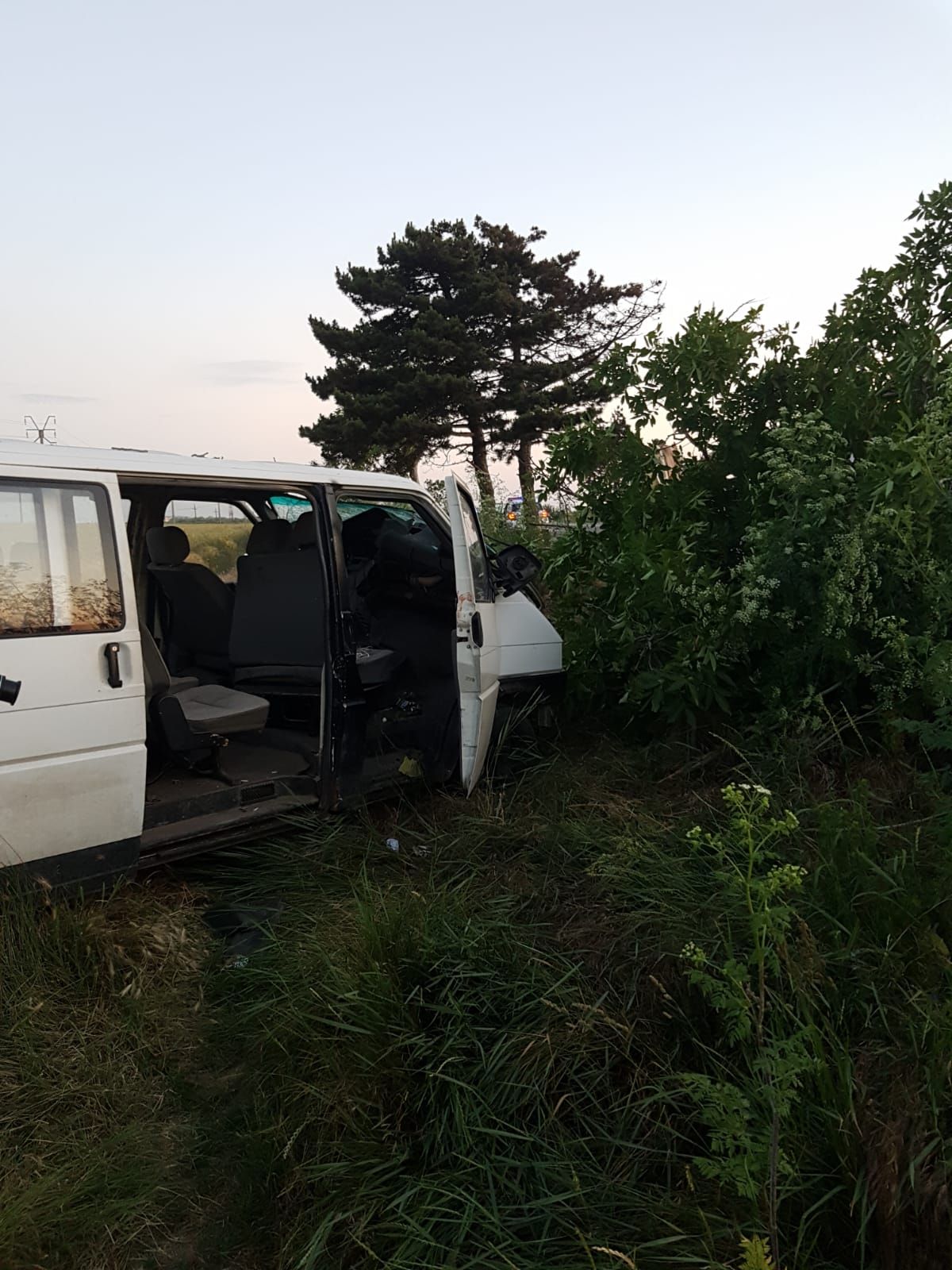 Conform IPJ Constanța, autoutilitara a părăsit partea carosabilă către stânga și a intrat în coliziune cu un copac.