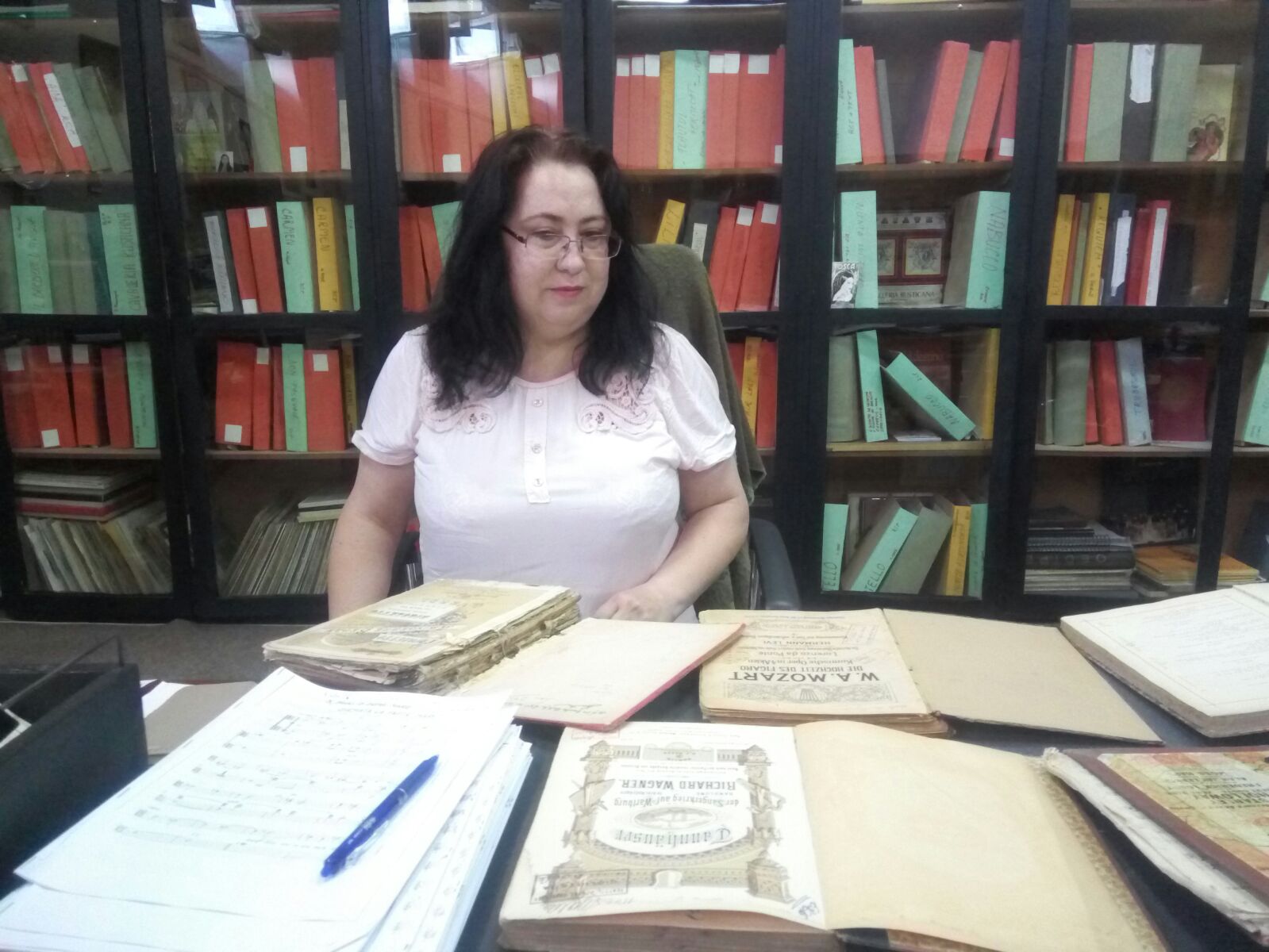 Unul dintre oamenii cheie ai instituției de cultură este bibliotecarul muzical Gabriela Petcu. De mai bine de 20 de ani are grijă de partiturile vechi, de comorile muzicale înregistrate și de cărțile în care sunt informații neprețuite dsepre muzica clasică și balet.