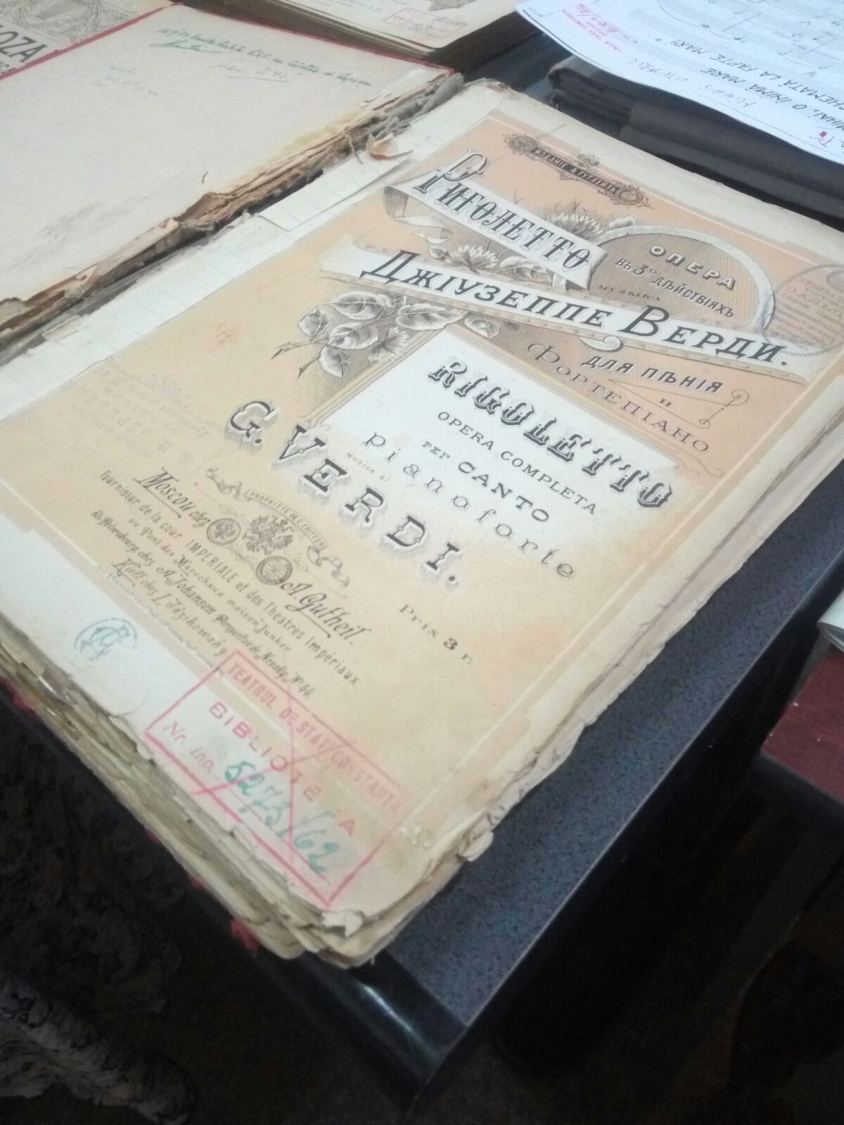 Bibliotecarul muzical Gabriela Petcu are în grija o întreagă colecție de partituri vechi, originale și foarte rare. Unele tipărite la Paris, altele la Moscova, înainte de anii 1900.