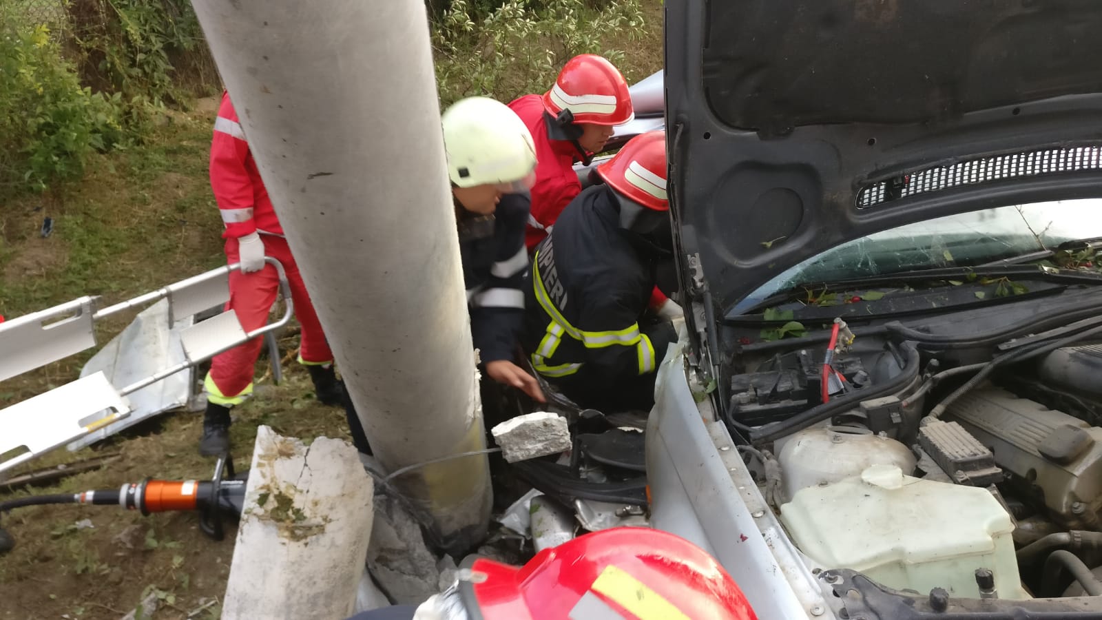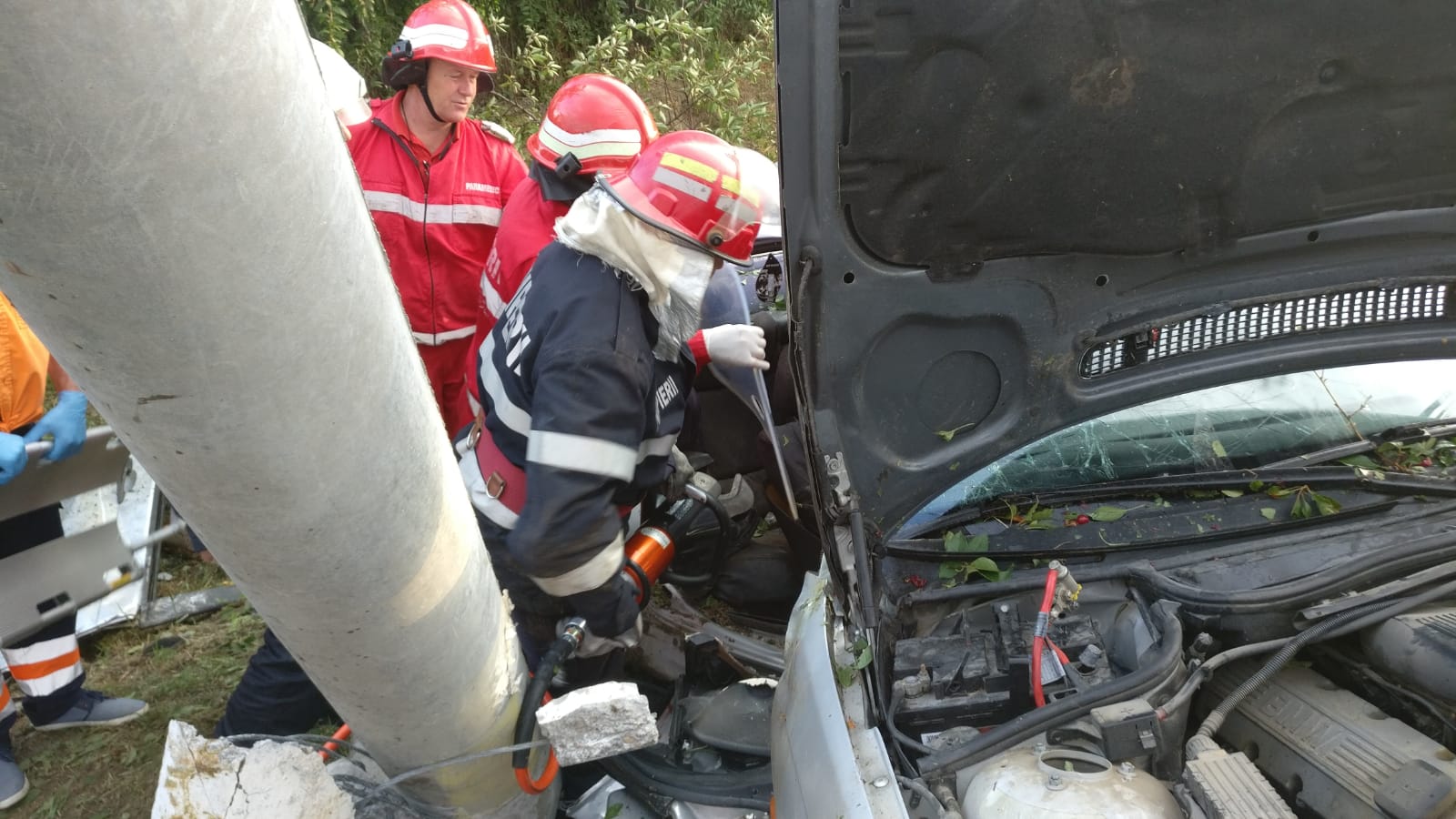 Se intervine cu o autospecială de stingere cu apă și spumă, o autospecială de descarcerare grea, un echipaj SMURD și 11 subofițeri. La fața locului sunt și patru ambulanțe SAJ.