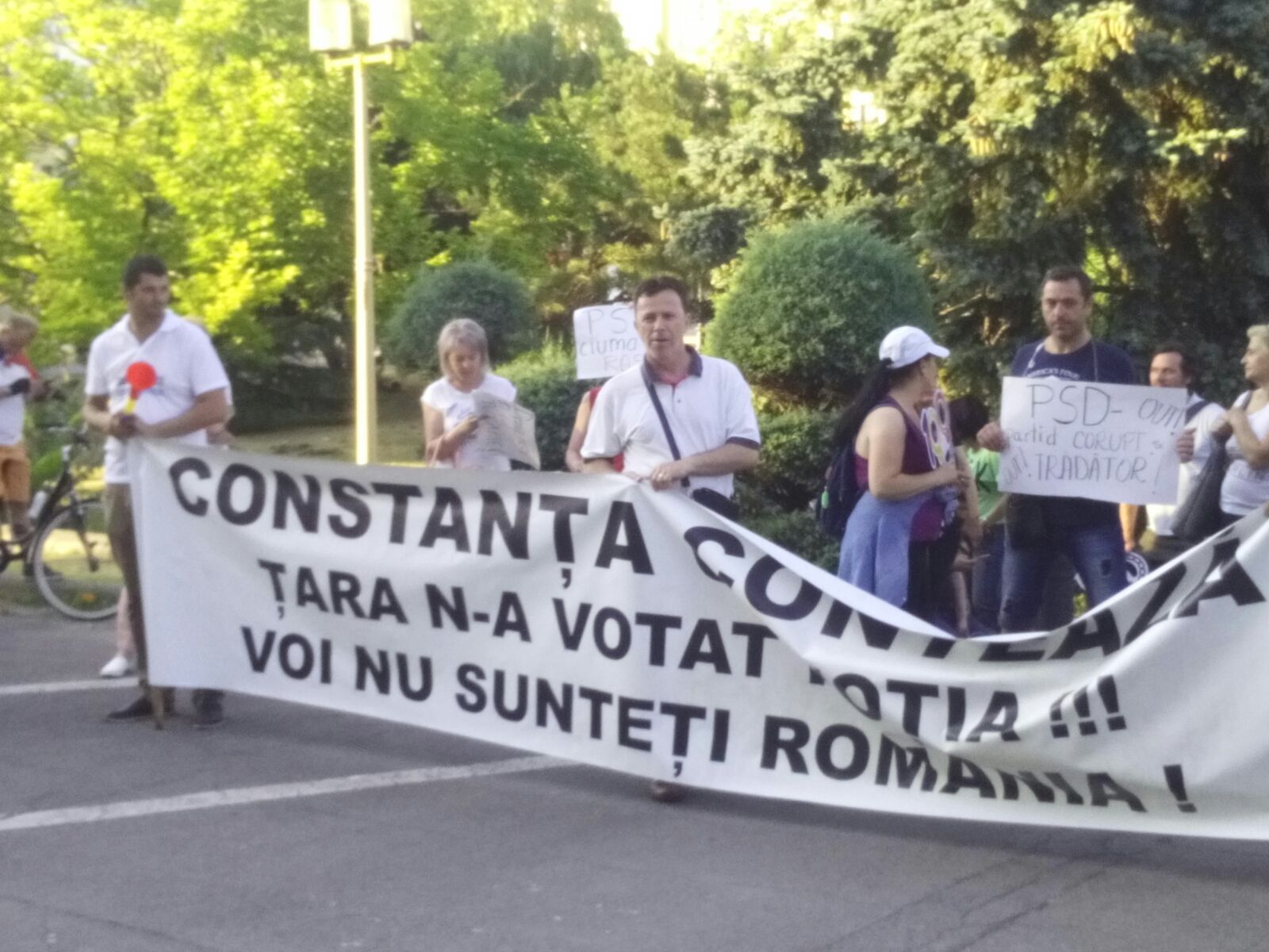 La protestul din fața Prefecturii Constanța s-au adunat peste 100 de persoane care din acest punct de întâlnire au plecat în marș pe traseul: Prefectură Constanța – bulevardul Ferdinand – bulevardul Lăpușneanu, la sediul PSD – bulebardul Tomis – Prefectură Constanța.