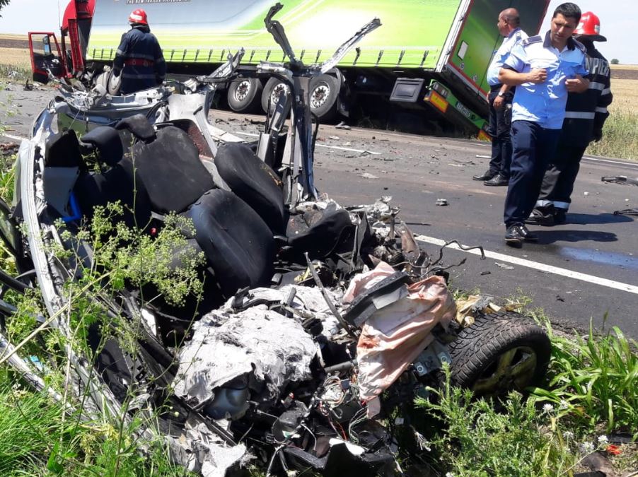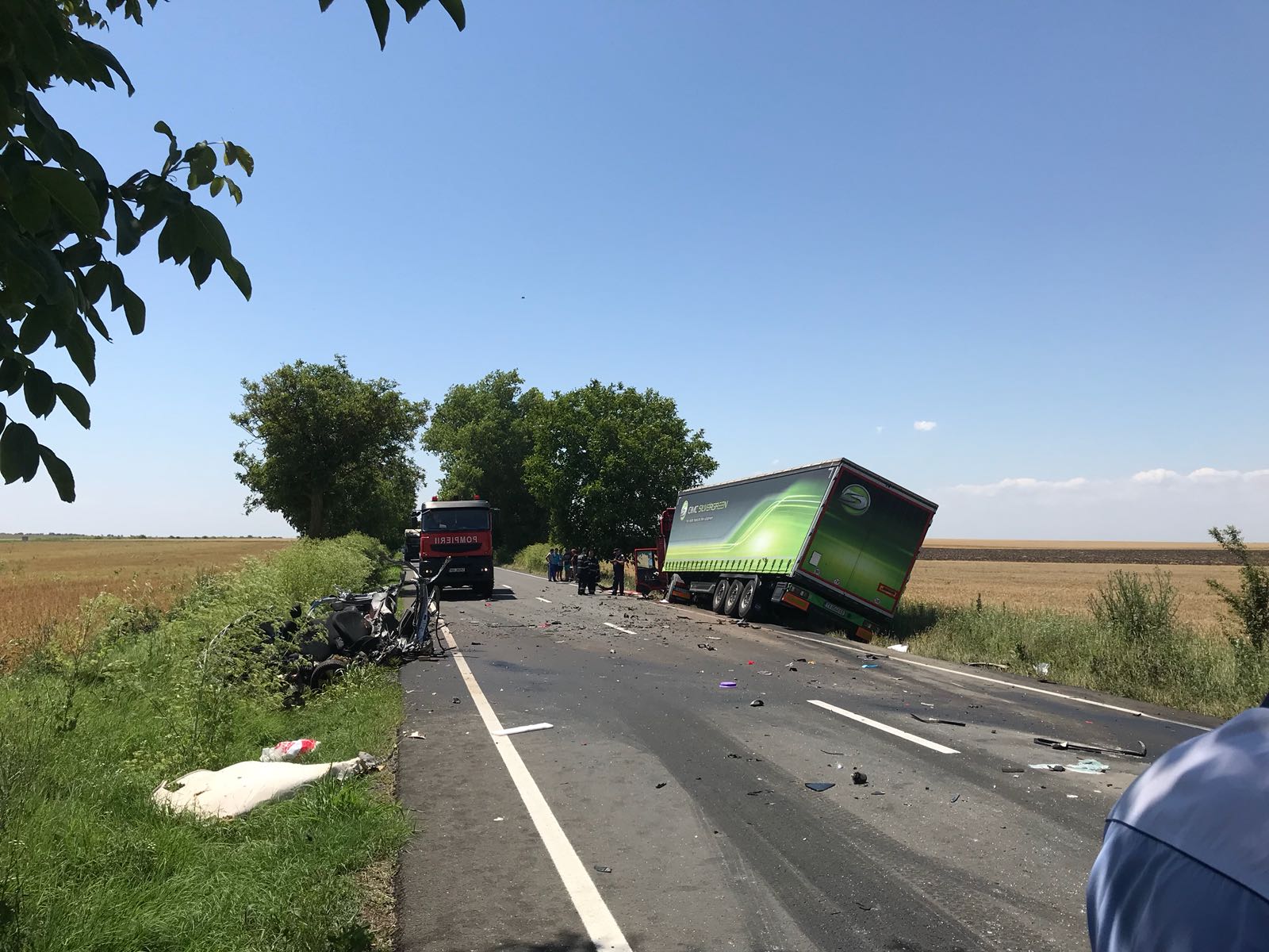 Din primele informații, autoturismul s-a ciocnit frontal cu TIR-ul, condus de un cetățean bulgar.
