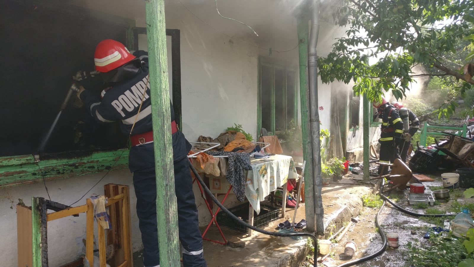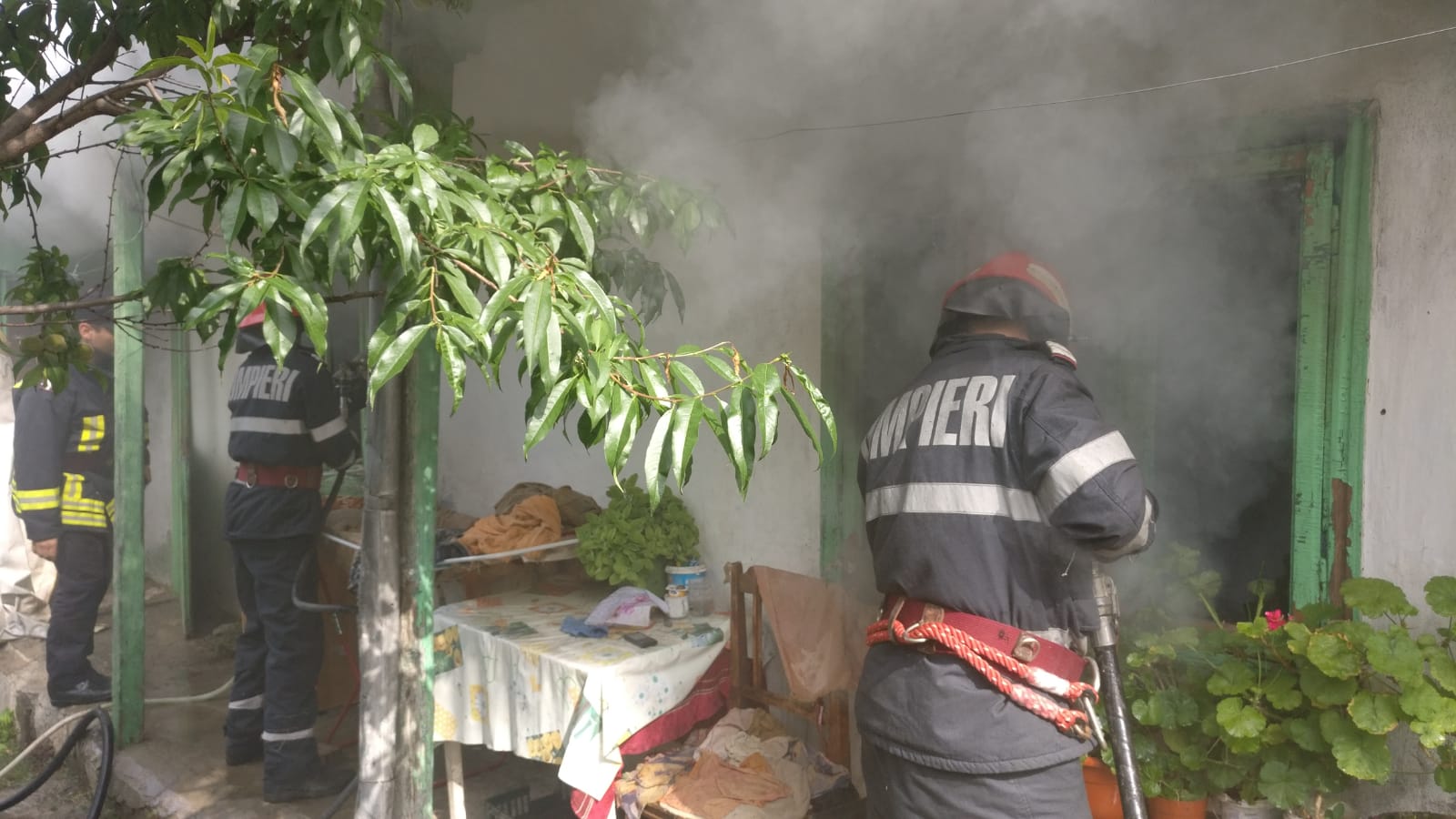 Incendiul se manifestă la mai multe încăperi ale casei.