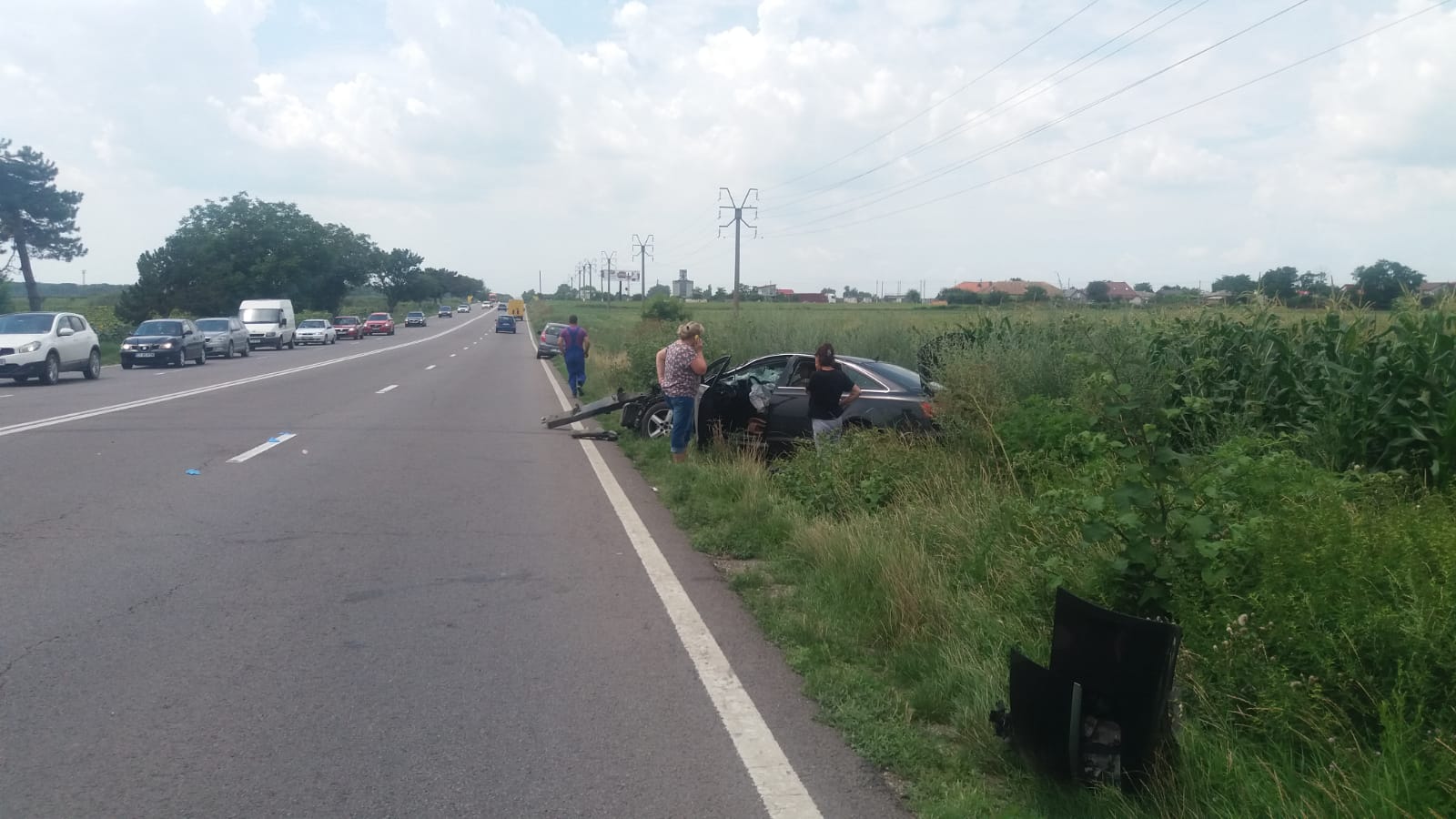 Șoferul din Audi și fiica sa au primit inițial îngrijiri medicale de la un echipaj al Serviciului Județean de Ambulanță, bărbatul fiind apoi transportat la spital pentru a fi ținut sub observație de medici.