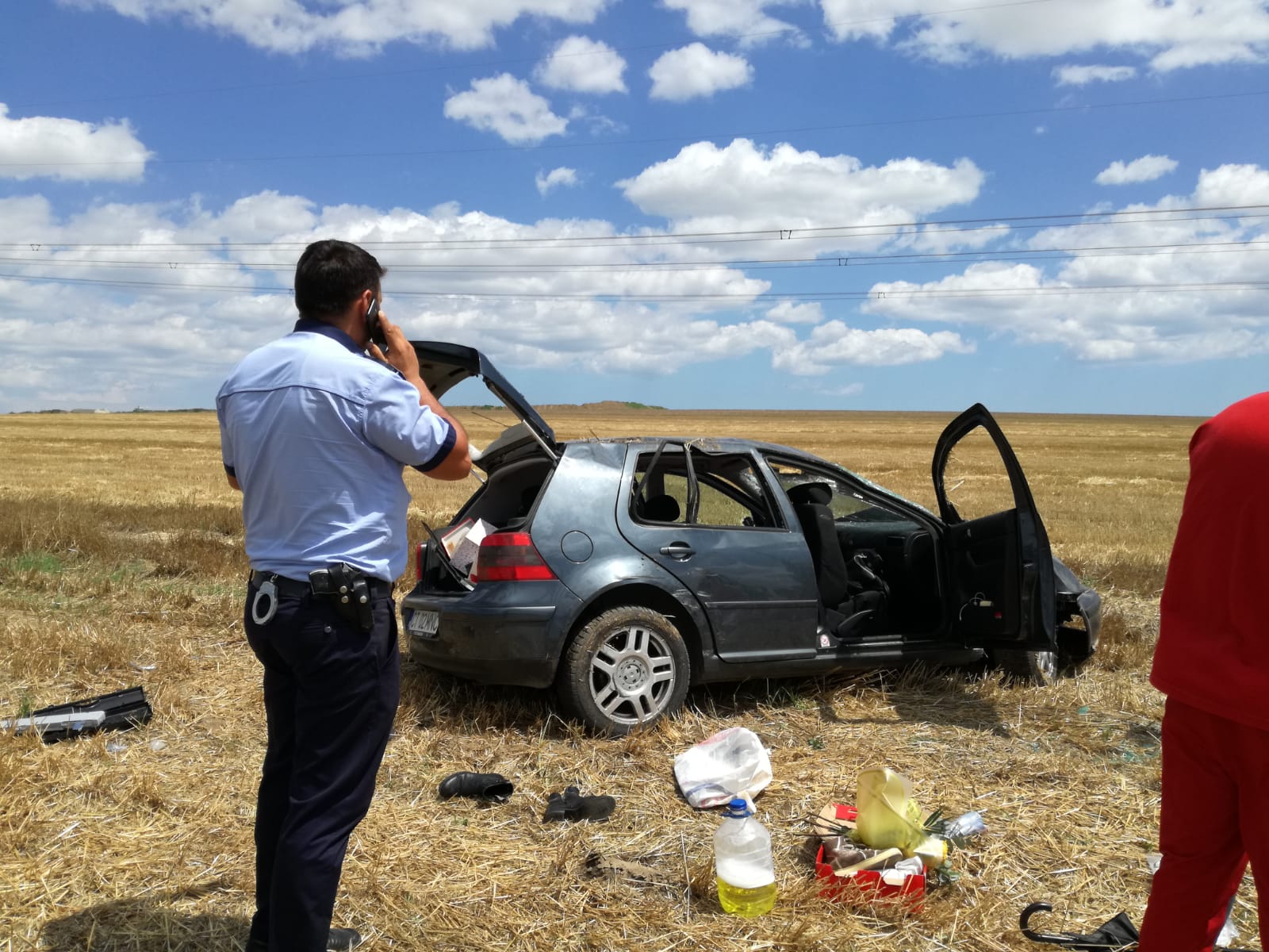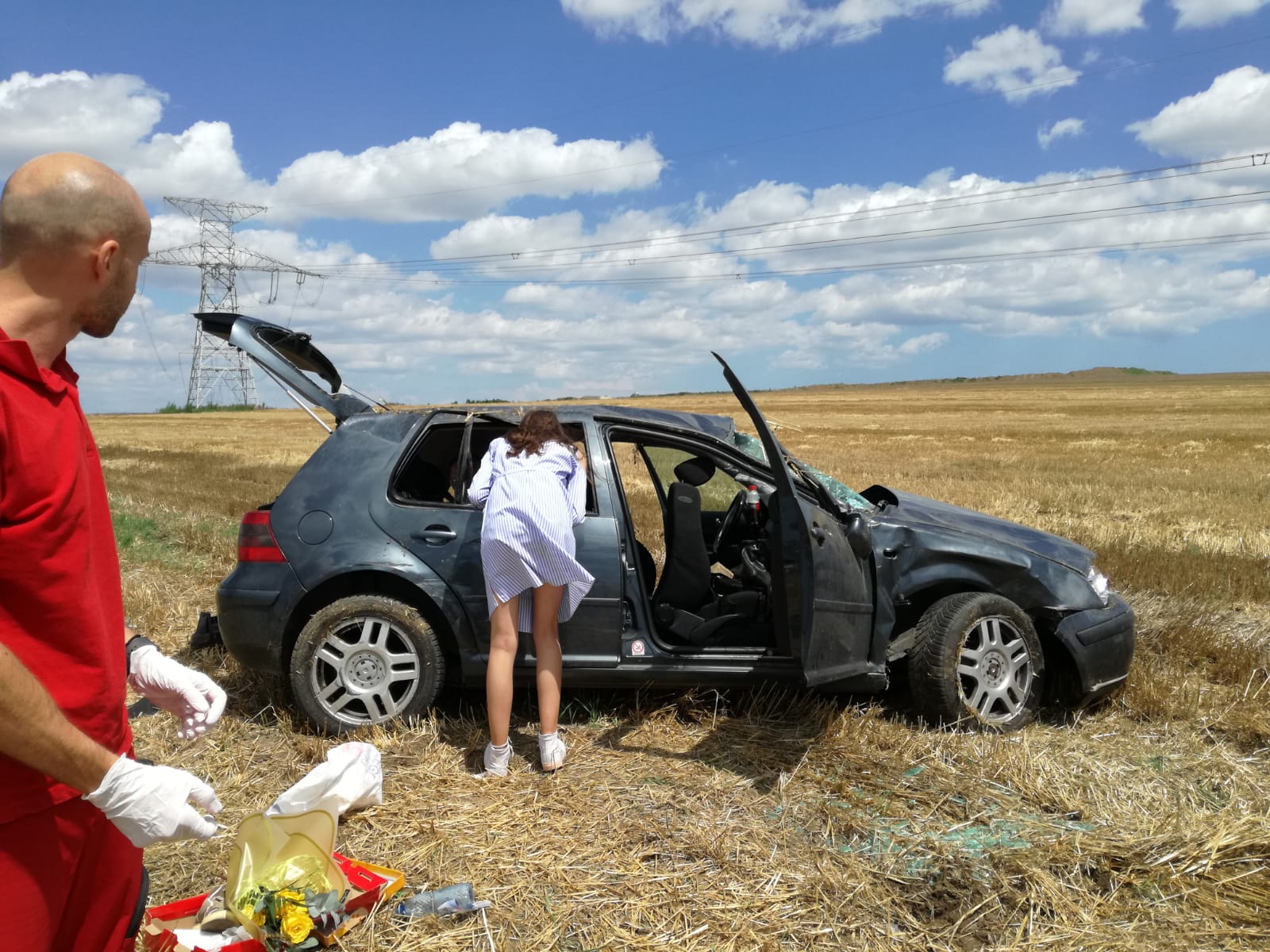„Astăzi, orele 13,40, femeie, 44 ani, a condus un autoturism pe DN 22, dinspre Constanța către Mihai Viteazul și ajungând la km 267, pe raza de acțiune a indicatorului Depășirea Interzisa, s a angajat în depășirea unui ansamblu de vehicule, condus de un bărbat în aceeași direcție și la reintrarea pe banda corespunzătoare direcției de deplasare, a acroșat partea dreapta fata a capului tractor și a pierdut controlul asupra direcției de mers și a ieșit în afara părții carosabile către dreapta. Accidentul s a soldat cu vătămarea corporală ușoară a conducătoarei auto și a pasagerei dreapta fata și vătămarea corporală gravă a pasagerilor din spate in vârstă de 69 ani și 74 ani“.
