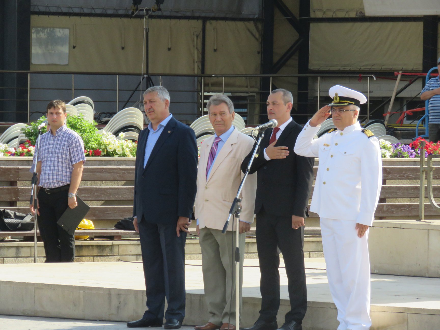 Evenimentul a început cu o scurtă slujbă religioasă şi s-a încheiat cu intonarea imnului de stat.