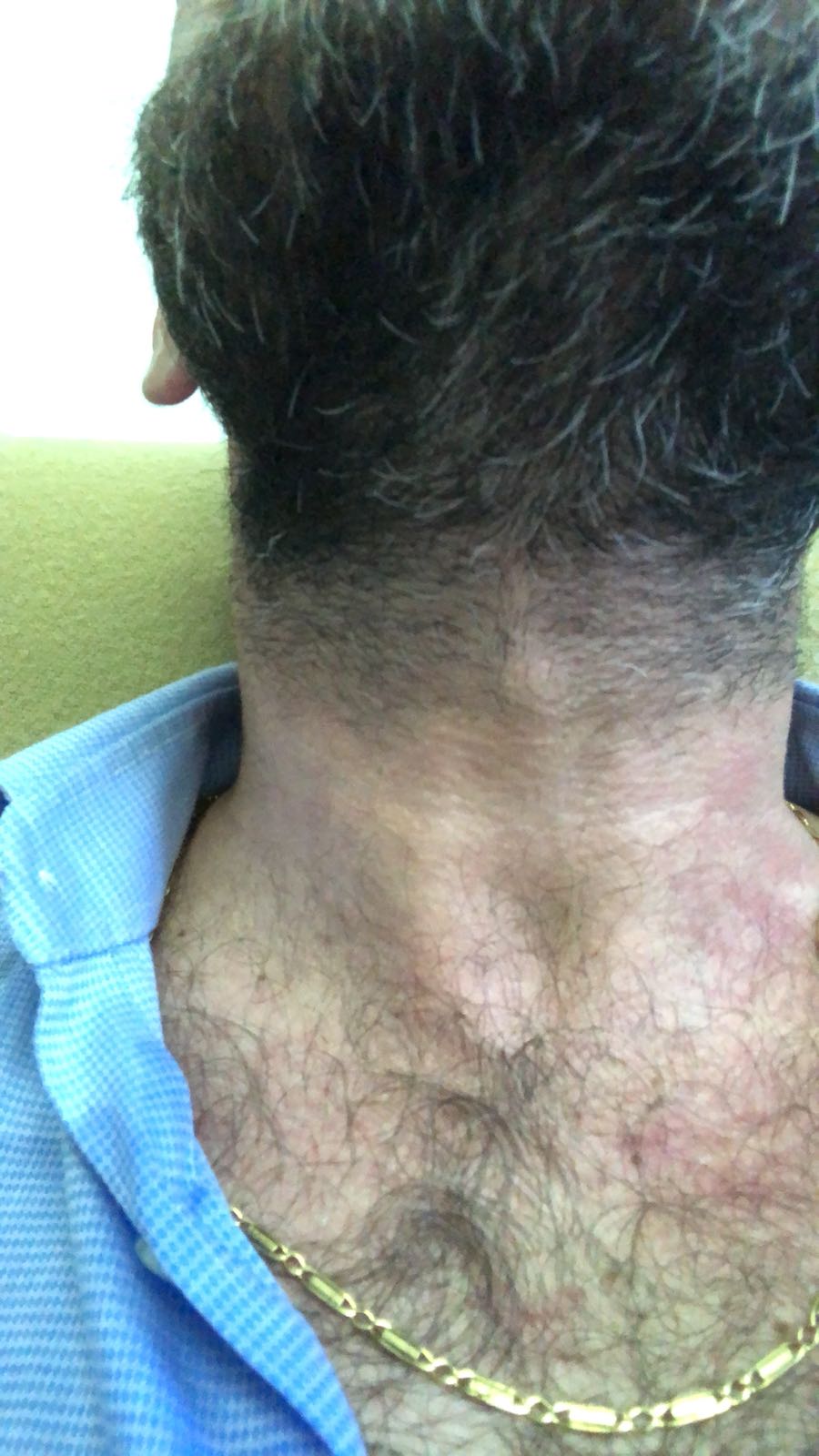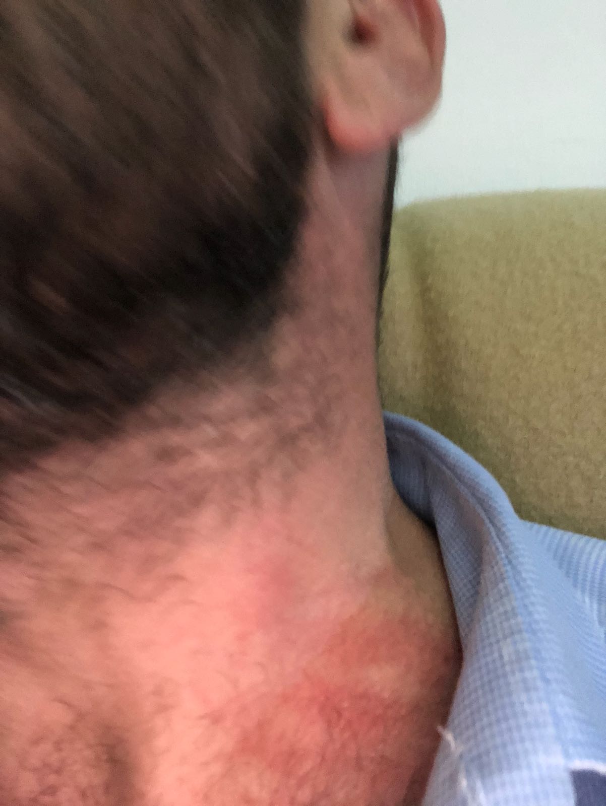 Rezultatul agresiunii, gâtul după strangulare, dintele spart – sau ce a ramas din el. Persoana care a agresat-o pe colega mea, m-a îmbrâncit pe mine, a spart o sticlă amenintând că se mutilează. Cel care îmi interzice să filmez și unul dintre agresori este patronul locației. Bătut de trei bărbați, ne-au smuls telefoanele”, a declarat cms. şef adjunct al CJPC, Horia Constantinescu.