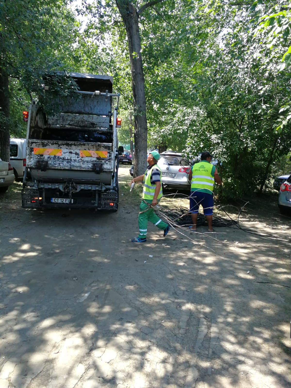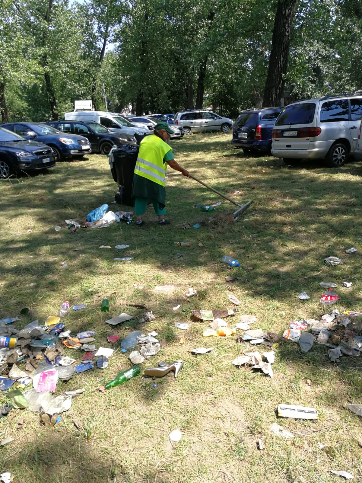 Angajații Serviciului Igienă Publică și ai societății de salubrizare au acționat pentru colectarea deșeurilor aruncate neglijent prin iarbă, iar polițiștii locali au identificat autoturismele parcate ilegal pe spațiul verde și i-au sancționat pe șoferii care nu respectă legea.