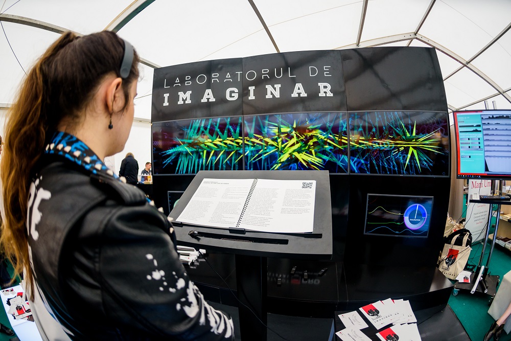 Laboratorul de Imaginar este o instalație video interactivă compusă din căști neuronale, care captează undele cerebrale în timpul cititului, un dispozitiv pentru scanarea retinei, un dispozitiv de citire QR code, programare și mapare video. Toate acestea formează un sistem care interpretează datele, le codează și le transformă în proiecții vizuale, la care se adaugă dispozitivul care măsoară nivelul de atenție și cel de imaginație din timpul cititului.