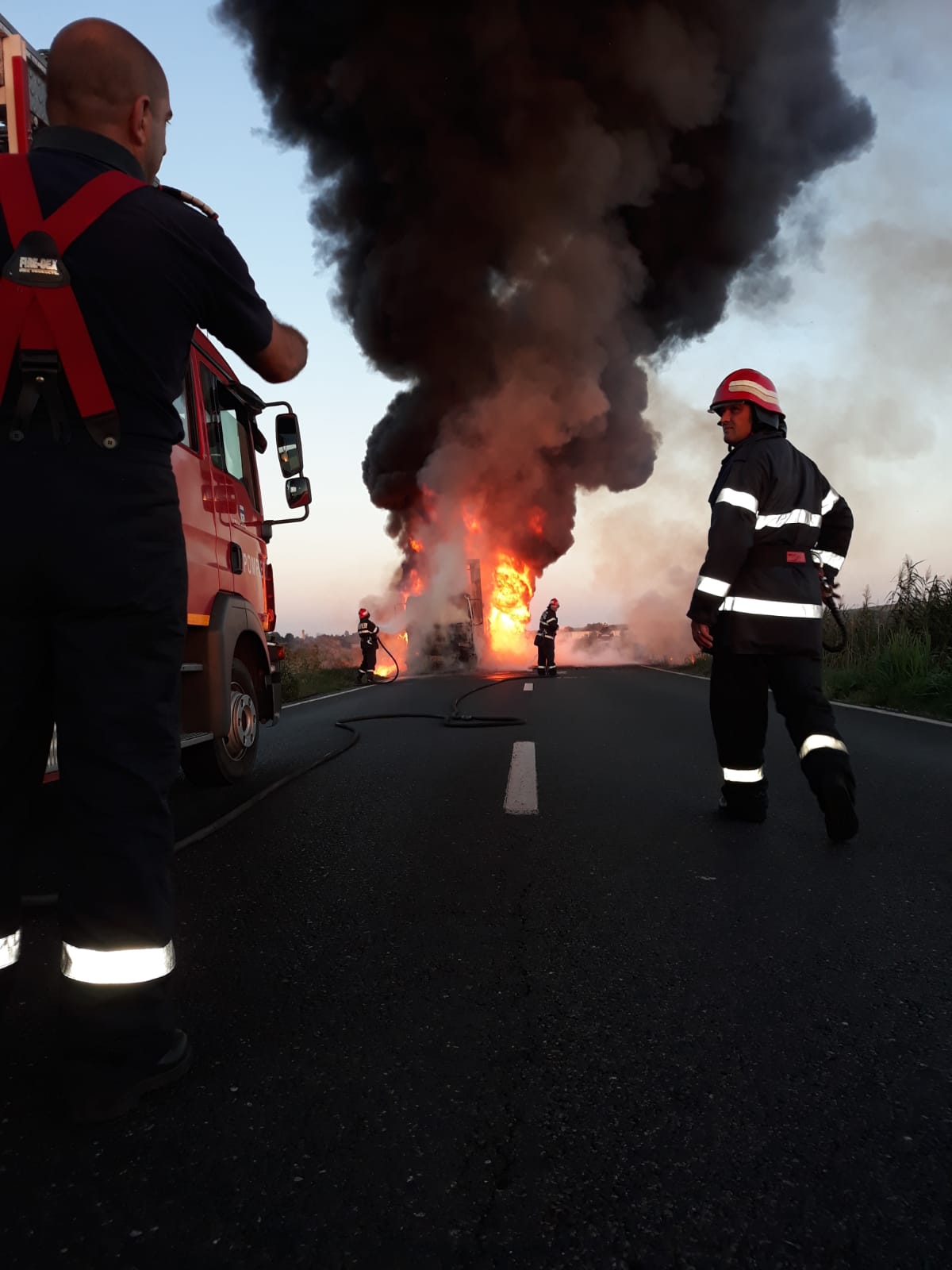 La ajungerea echipajelor de pompieri, incendiul se manifesta generalizat cuprinzând întreg autocamionul care era încărcat cu mase plastice.