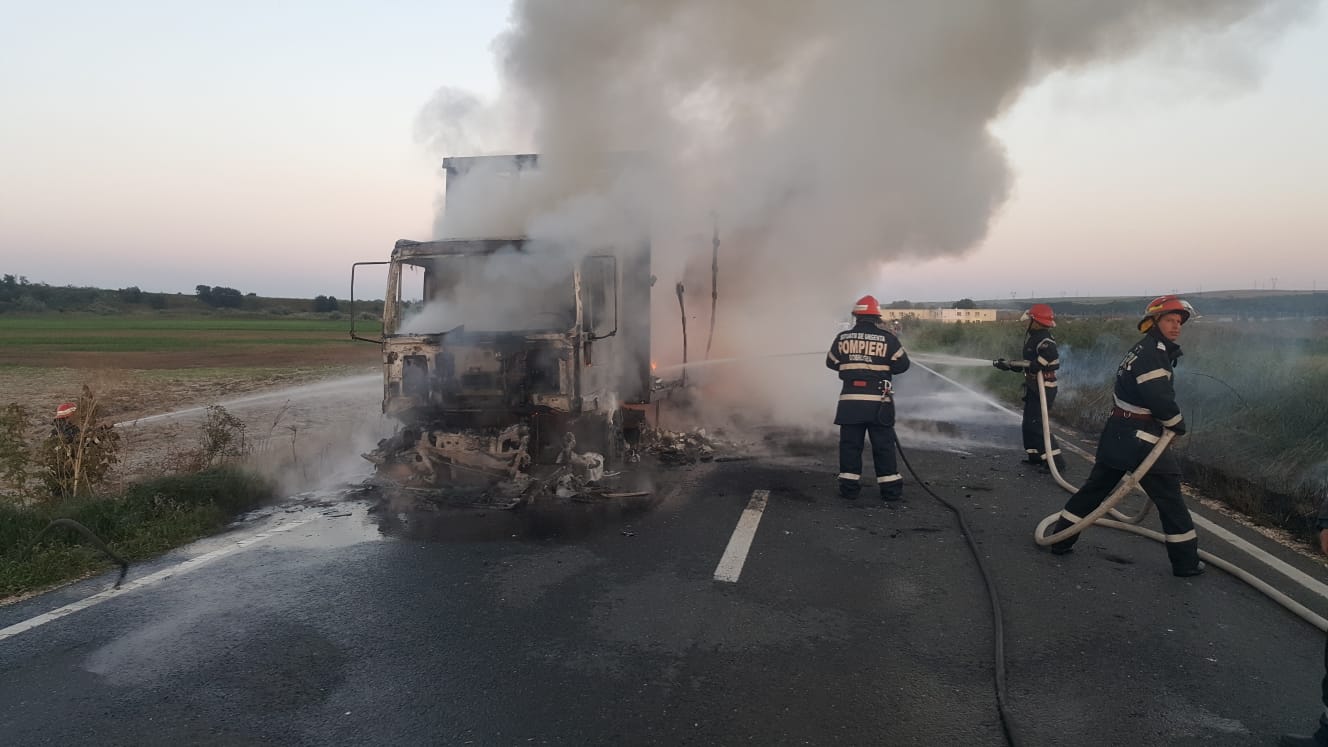 Județul CONSTANȚA/FOTO: Camion distrus în trafic de un incendiu