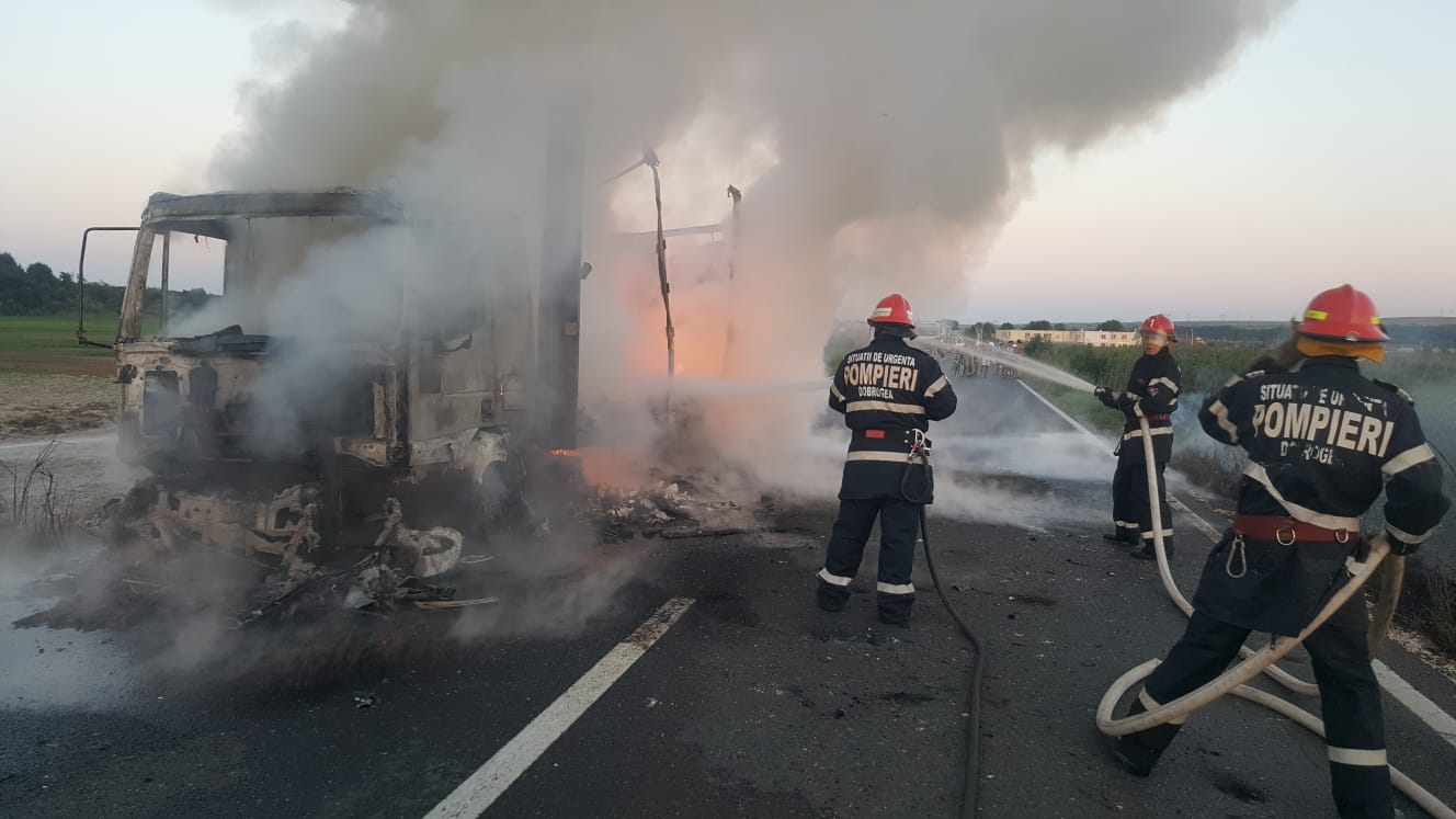 Autocamionul a ars în totalitate, iar conform ISU Dobrogea, cauza probabilă a incendiului a fost un scurt circuit.