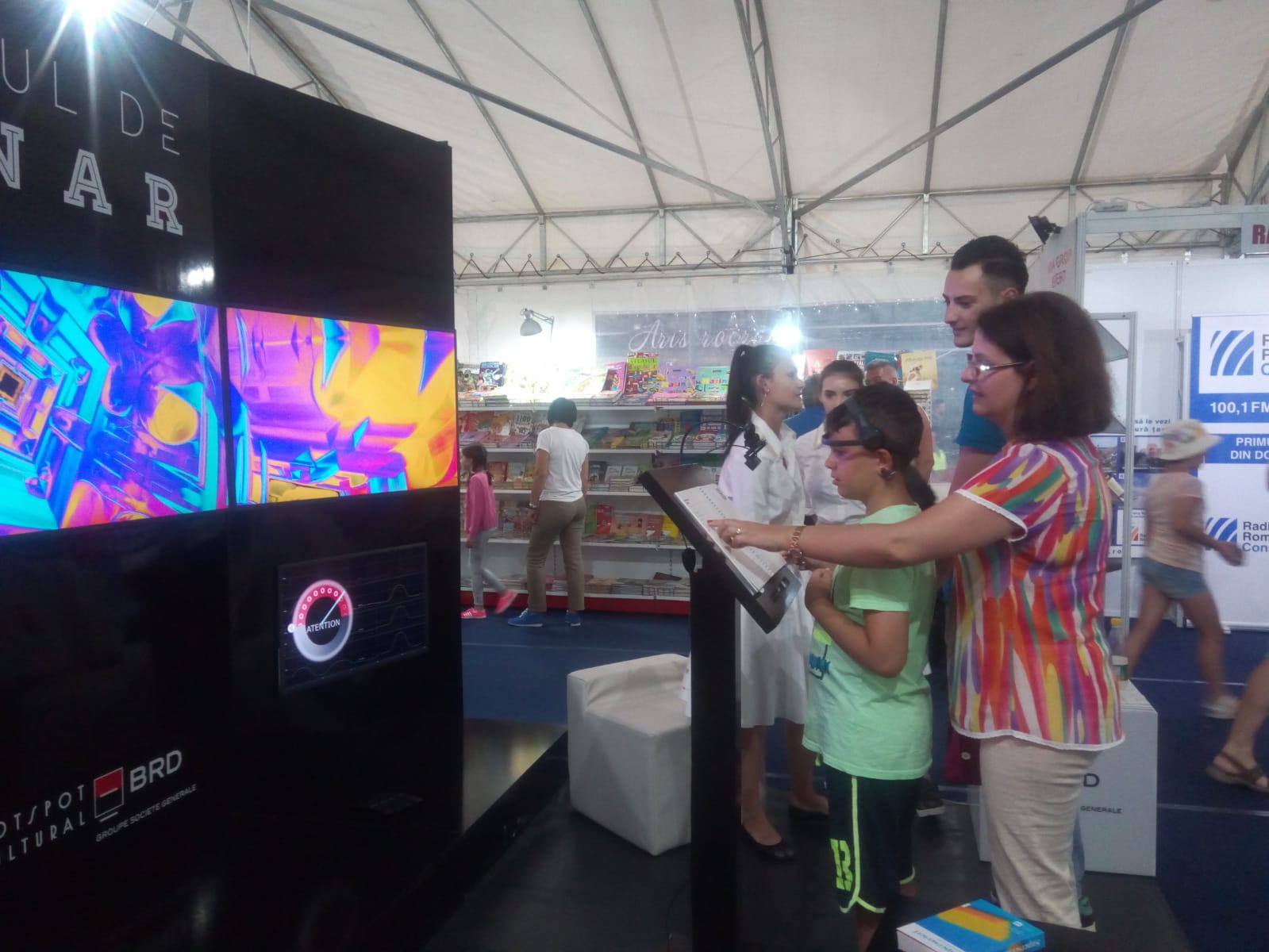 „Li se pun niște căști neuronale, iar în partea dreaptă vedeți atenția, în timp ce în partea stângă apare imaginația – în funcție de atenția sau imaginația dumneavoastră crește sau scade intensitatea. Formele geometrice reprezintă atenția, iar culorite – imaginația”, a declarat Zeadin Ailin.