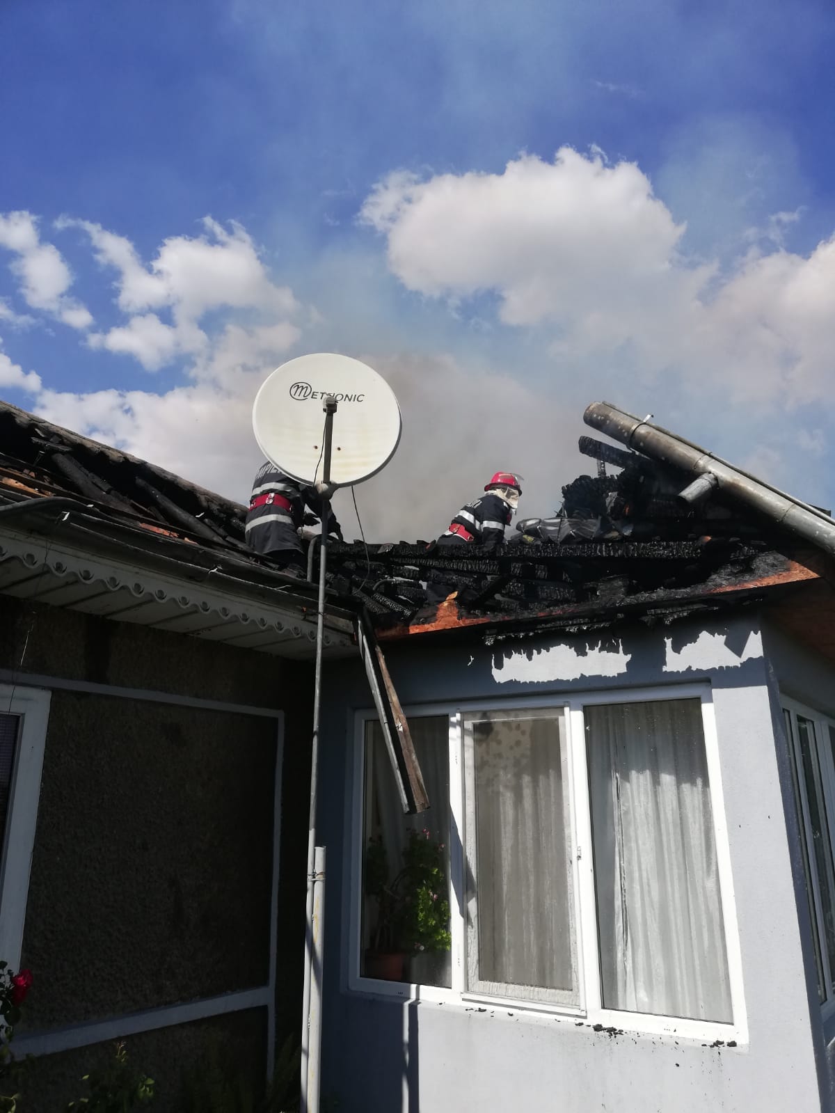 FOTO – Județul TULCEA: Incendiu izbucnit la acoperișul unei case. Există PERICOL de propagare la o altă locuință