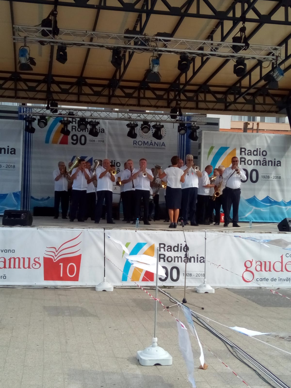 Spectacolele ultimei seri a Târgului Gaudeamus Litoral 2018 au fost deschise, la ora 17.00, de Fanfara „Muzica Apelor“ a companiei de apă RAJA.