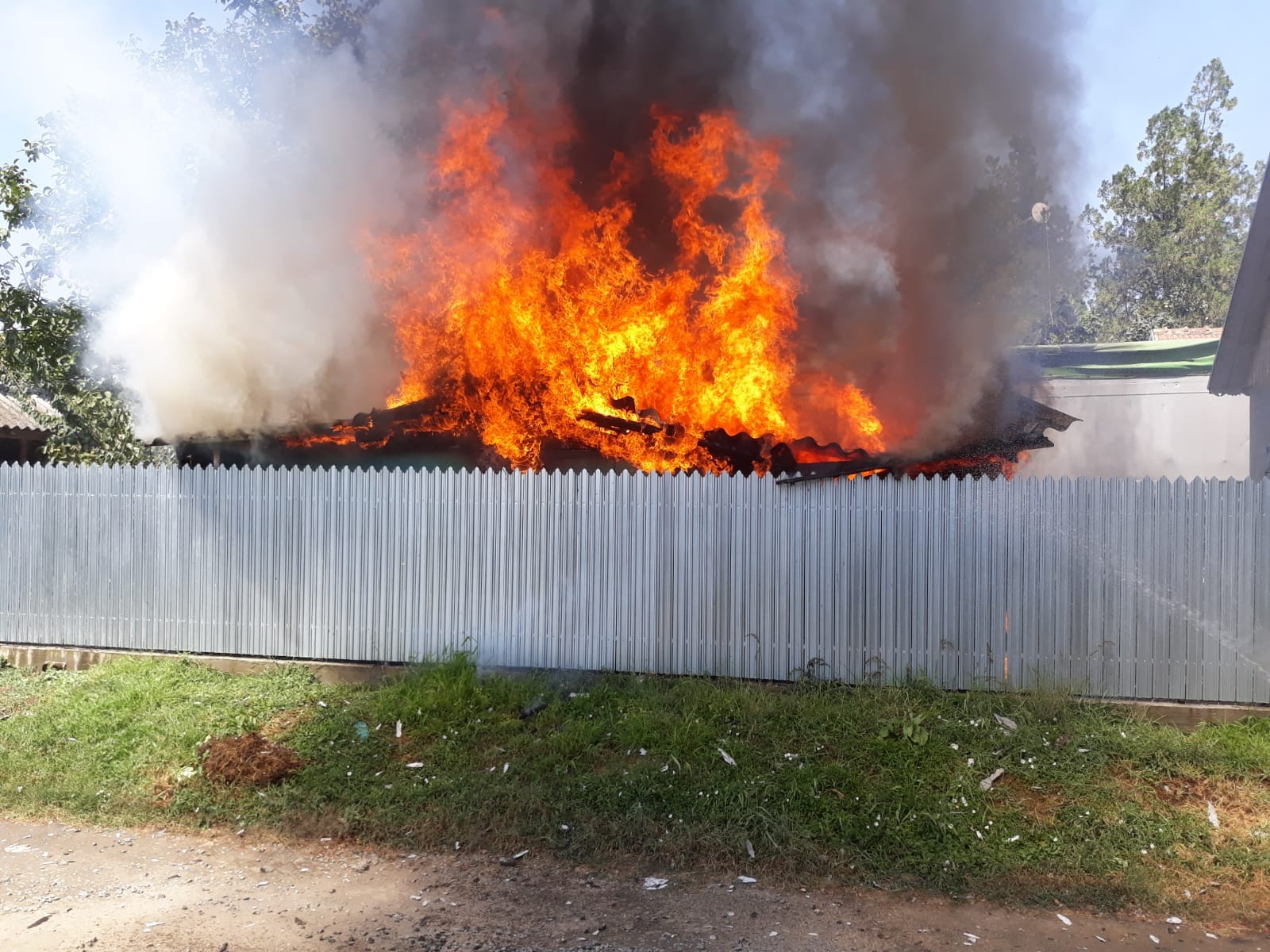 Magazia din lemn a fost mistuită de flăcări din temelii, iar văpaia a afectat și o semi-remorcă parcată în curte.