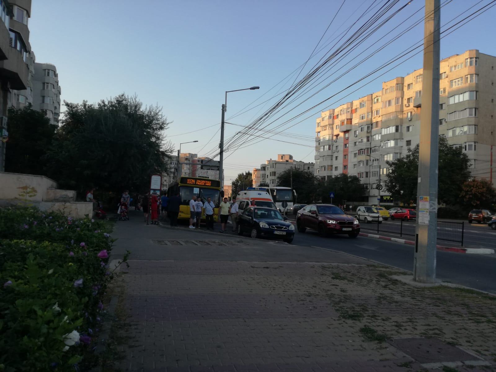 Potrivit Serviciului Județean de Ambulanță Constanța, șoferul autobuzului care circula pe linia 102N a pus frână bruscă, iar o femeie gravidă s-a lovit ușor.