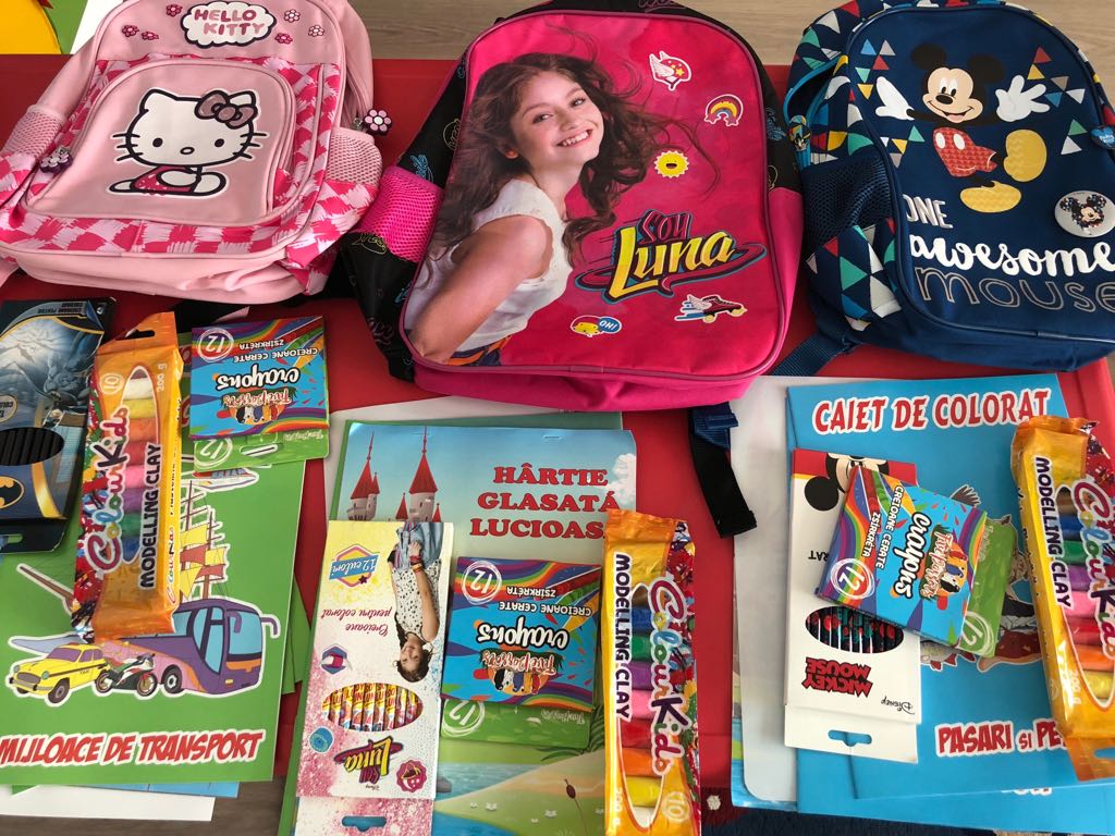 Ghiozdanele, în valoare de peste 1.200.000 de lei, de o calitate deosebită, vin la pachet și cu penare, acuarele, caiete, blocuri de desen, cărți și creioane de colorat, bineînțeles, diferențiate în funcție de vârstă: grădiniță, clasele 0 – IV și V – VIII.