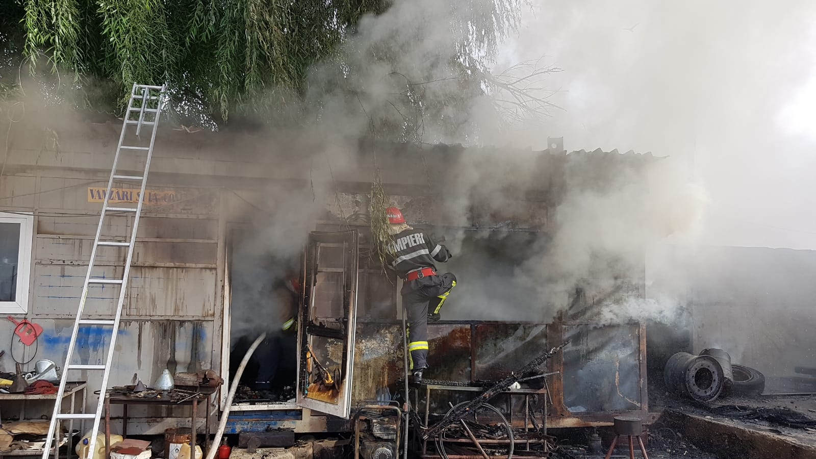 FOTO – Județul CONSTANȚA: Incendiu la o magazie plină cu mase plastice