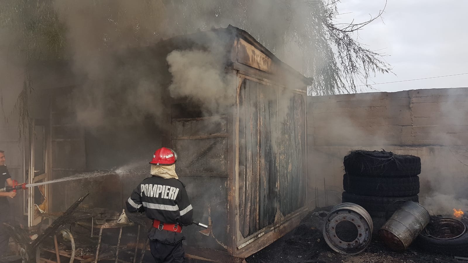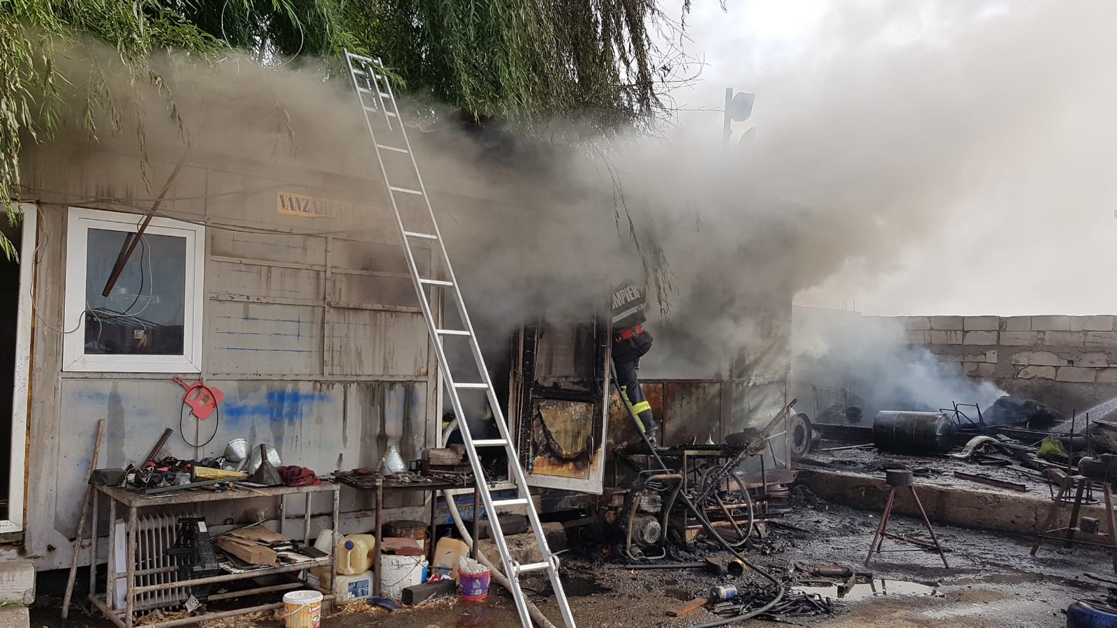 Potrivit primelor informații, a ars o magazie plină cu mase plastice.