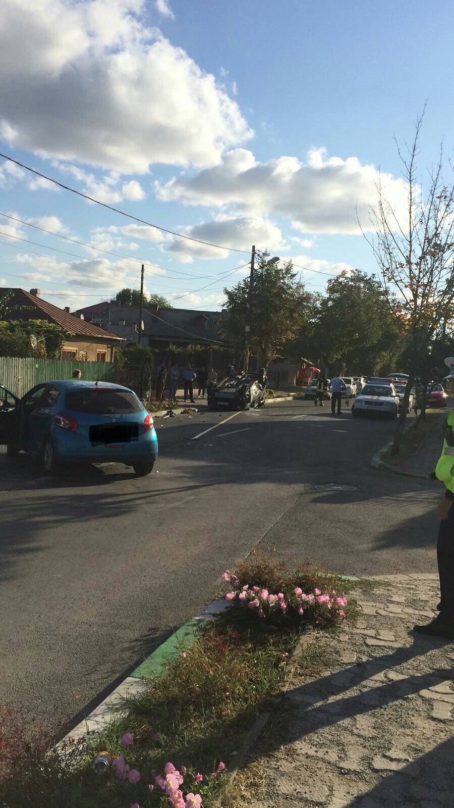 Polițiștii spun că a fost vorba de un impact între două autoturisme, în urma căruia unul dintre ele s-a răsturnat. A fost nevoie de intervenția pompierilor de la descarcerare pentru a o extrage din mașina răsturnată pe femeia rănită.